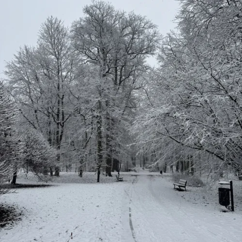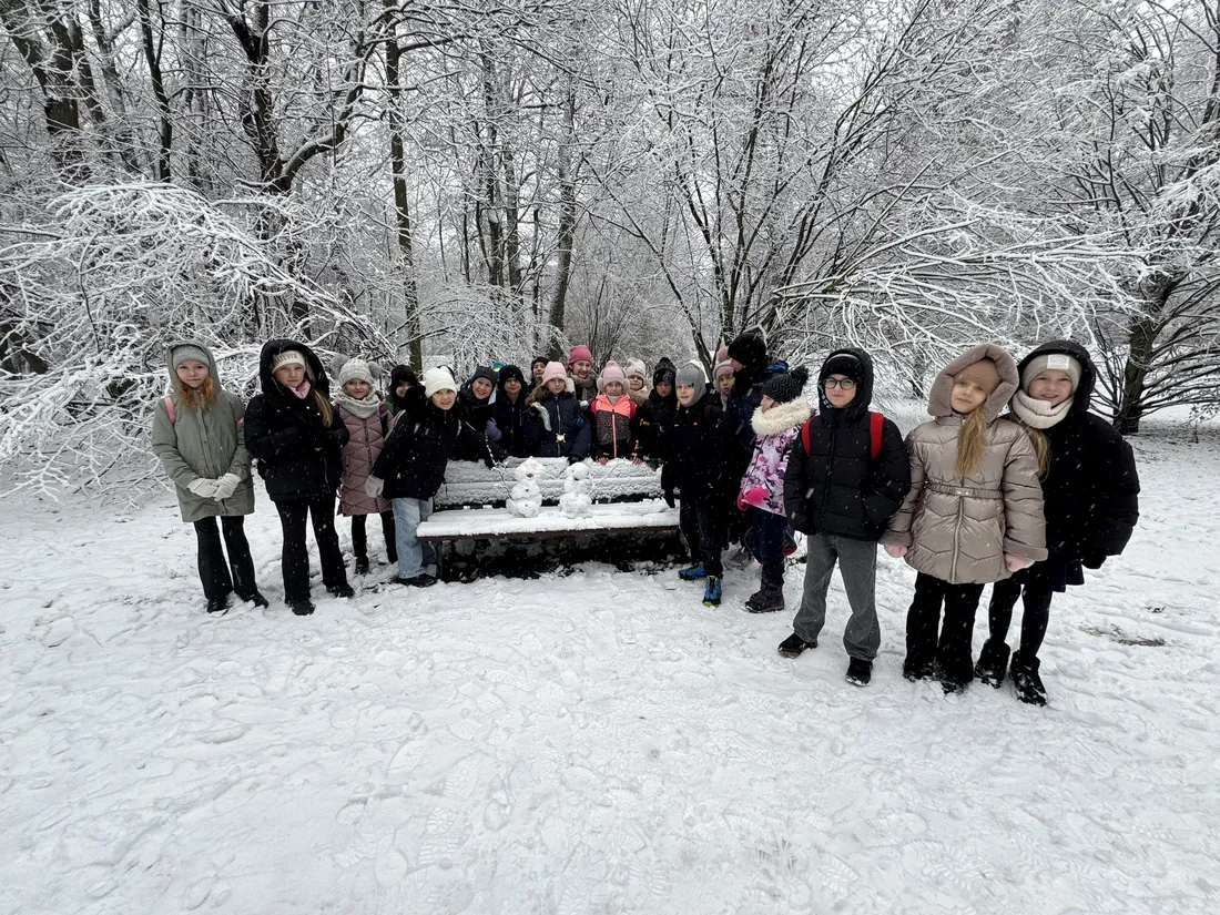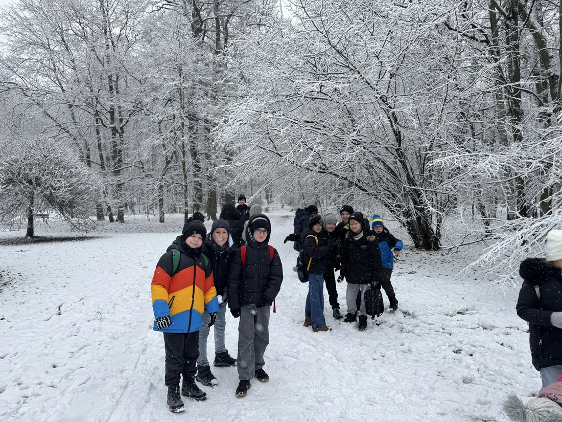W drodze powrotnej do szkoły uczniowie podziwiali przepiękny zimowy krajobraz kaliskiego parku, który dodatkowo podkreślił wyjątkowy charakter tego dnia.