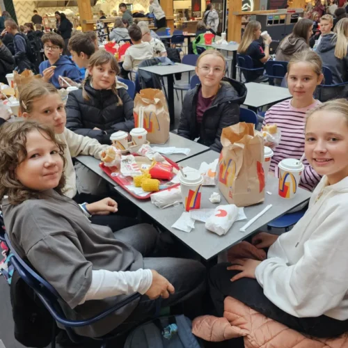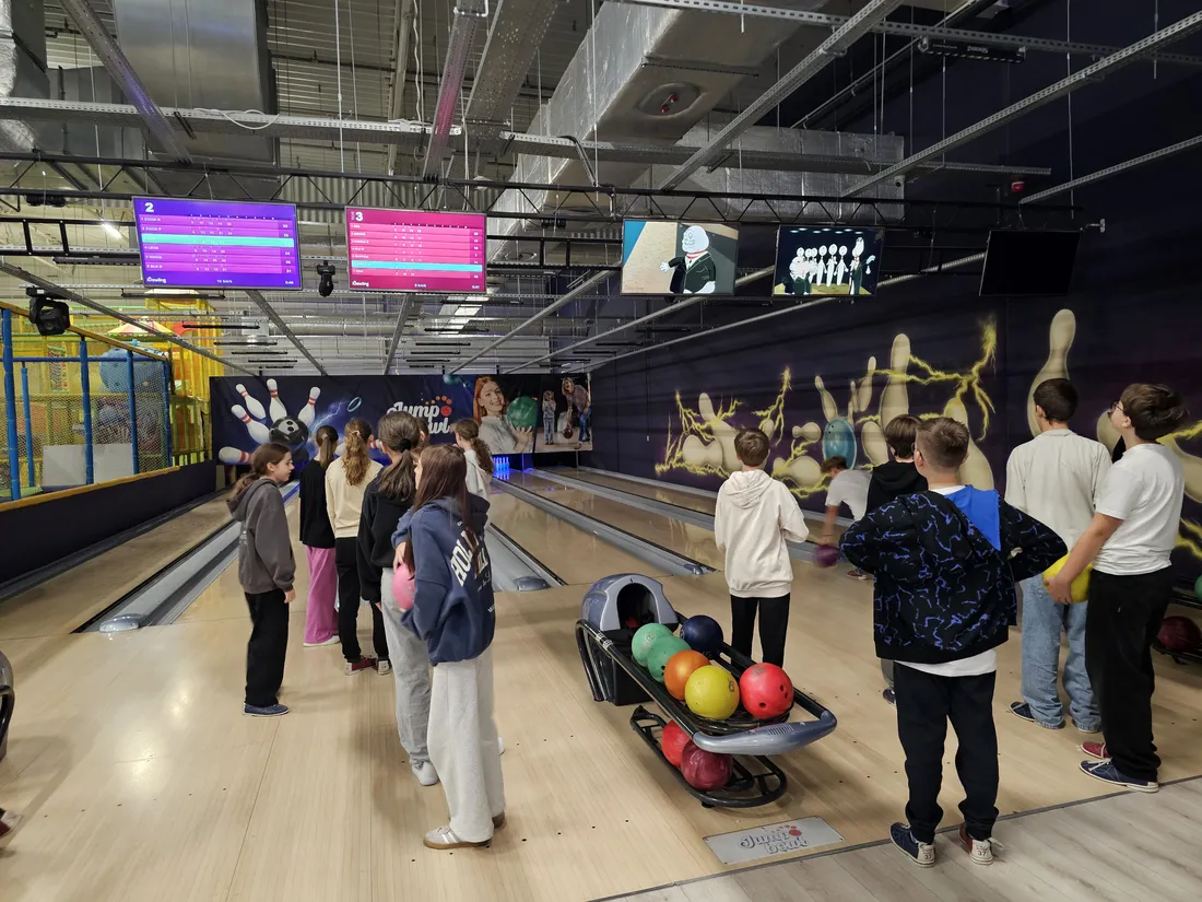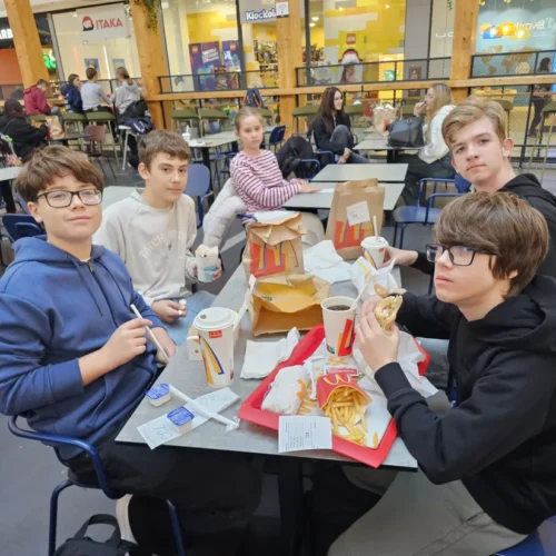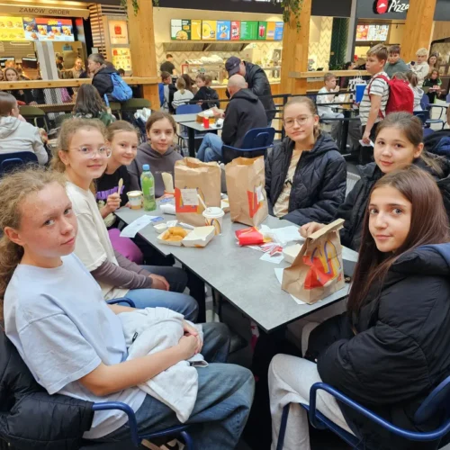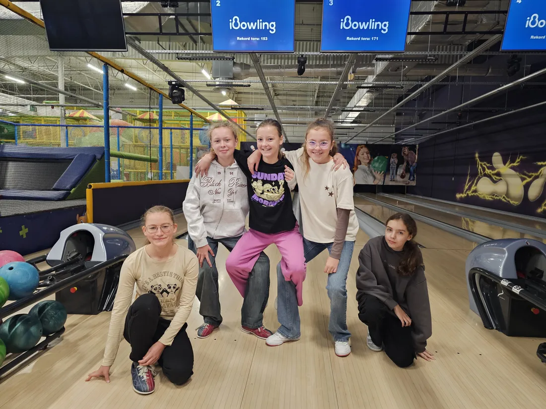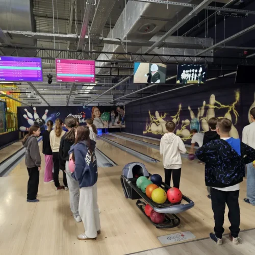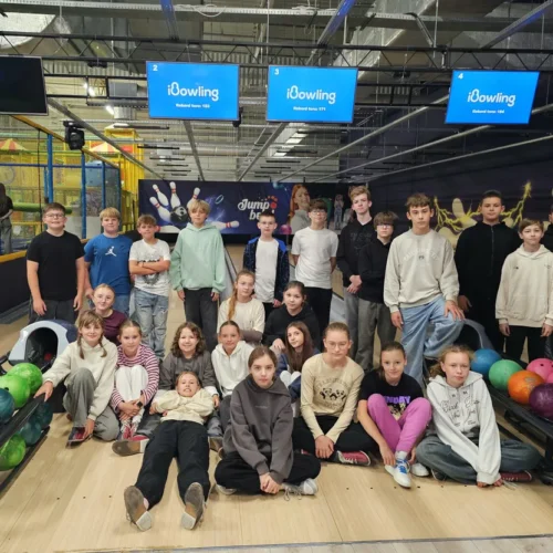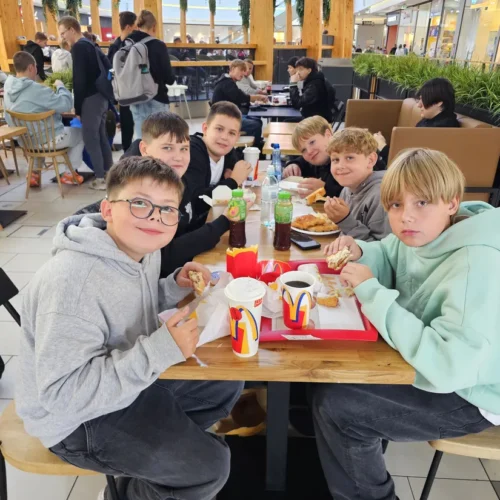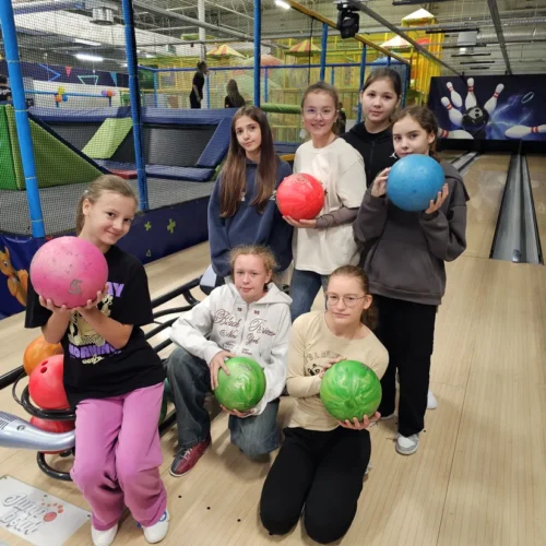 Wspólne świętowanie rozpoczęło się w Rodzinnym Parku Rozrywki Jump Planet, gdzie wszyscy mogli sprawdzić swoje umiejętności w grze w kręgle. Po sportowych zmaganiach przyszedł czas na regenerację – uczniowie ruszyli do Galerii Amber, gdzie każdy znalazł dla siebie coś pysznego. Po takiej dawce ruchu, należała się solidna porcja kalorii! Śmiechu, zabawy i dobrego jedzenia nie brakowało – czyli było wszystko, co potrzebne do udanego świętowania.