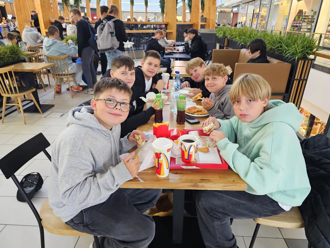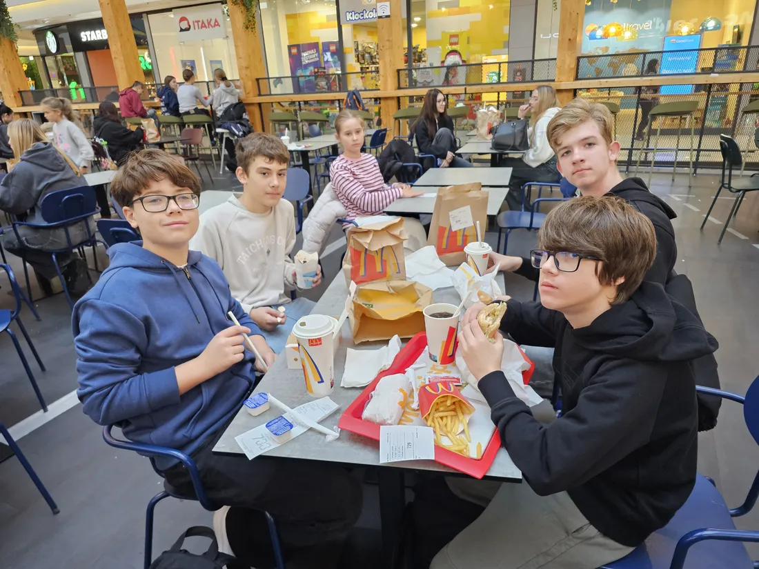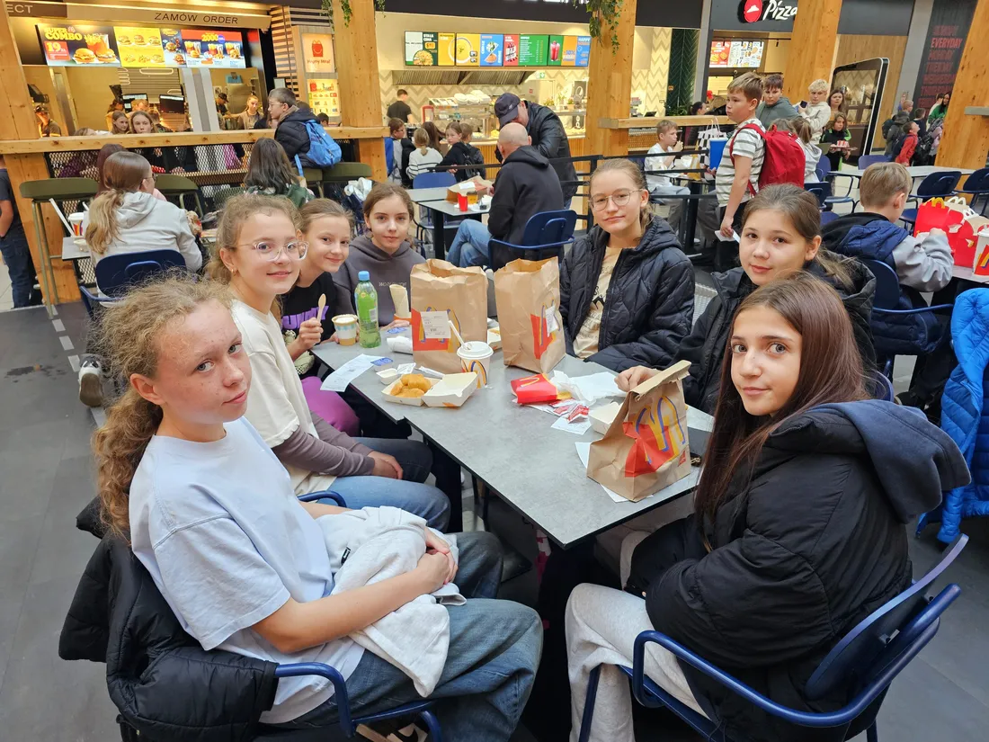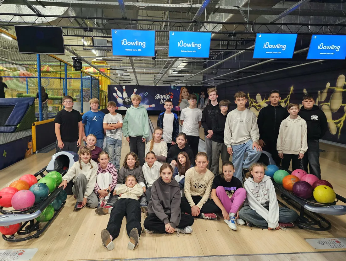 Wspólne świętowanie rozpoczęło się w Rodzinnym Parku Rozrywki Jump Planet, gdzie wszyscy mogli sprawdzić swoje umiejętności w grze w kręgle. Po sportowych zmaganiach przyszedł czas na regenerację – uczniowie ruszyli do Galerii Amber, gdzie każdy znalazł dla siebie coś pysznego. Po takiej dawce ruchu, należała się solidna porcja kalorii! Śmiechu, zabawy i dobrego jedzenia nie brakowało – czyli było wszystko, co potrzebne do udanego świętowania.