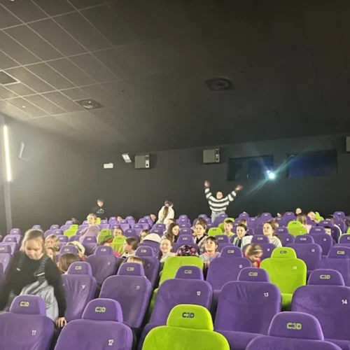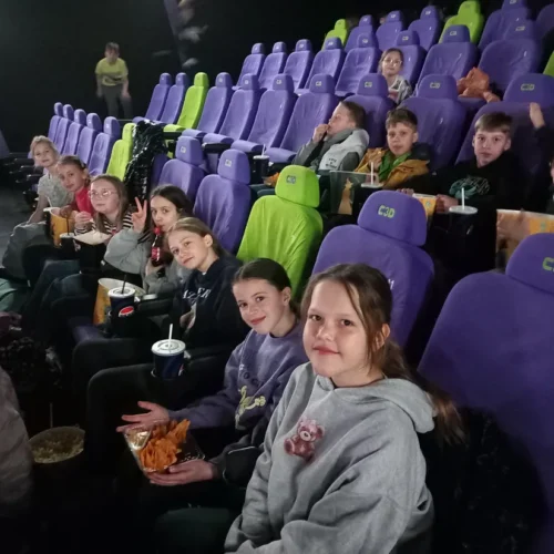 Dziś uczniowie klas 4a i 4b wzięli udział w wyjściu do kina z okazji zbliżającego się Dnia Kobiet. Obejrzeli film pt. „Za duży na bajki 3”, który dostarczył wszystkim wielu emocji i dobrej zabawy.