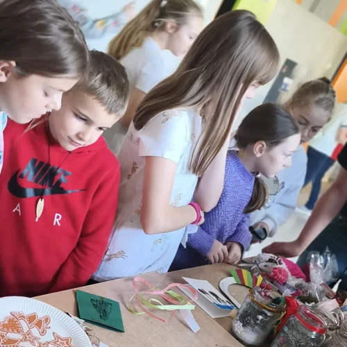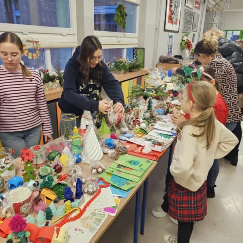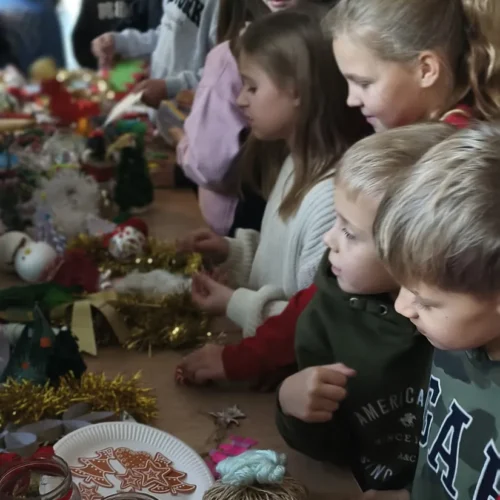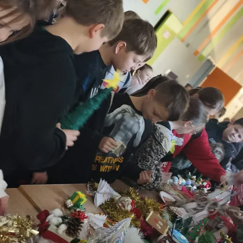 W czwartek, 28 listopada, w naszej szkole odbył się Kiermasz Bożonarodzeniowy. Dzieci wraz z rodzicami przygotowały i dostarczyły wiele pięknych, własnoręcznie wykonanych ozdób świątecznych. Dodatkowo podczas lekcji plastyki uczniowie tworzyli dekoracje pod czujnym okiem nauczycieli, wzbogacając kiermasz o kolejne wyjątkowe prace.