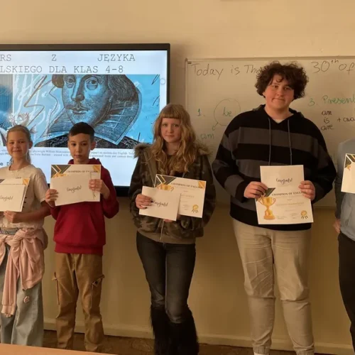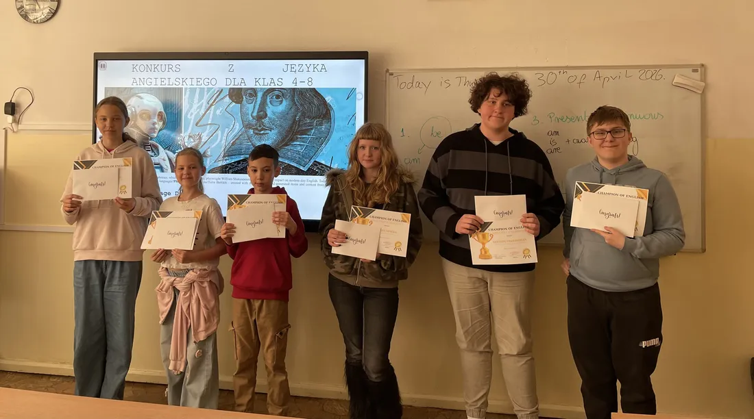 Serdecznie gratulujemy zwycięzcom oraz wszystkim uczestnikom za zaangażowanie i wysoki poziom wiedzy. Życzymy dalszej motywacji do poszerzania umiejętności i odkrywania nowych obszarów języka angielskiego!