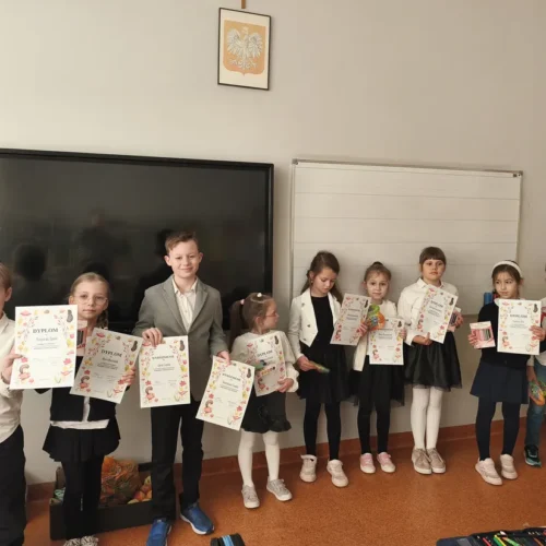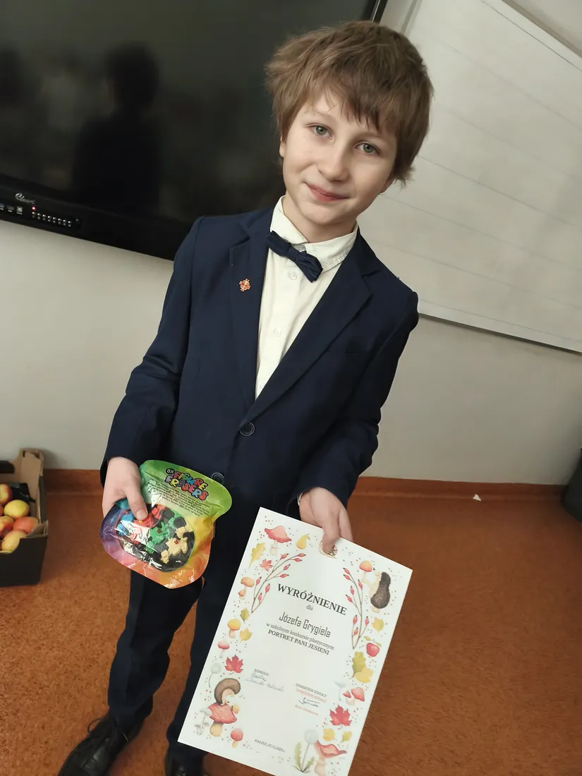 07.11.2025r. odbyło się uroczyste wręczenie nagród laureatom szkolnego konkursu plastycznego „Portret Pani Jesień” dla uczniów klas 1–3. Zwycięzcy oraz wyróżnieni uczniowie otrzymali dyplomy i drobne upominki.
