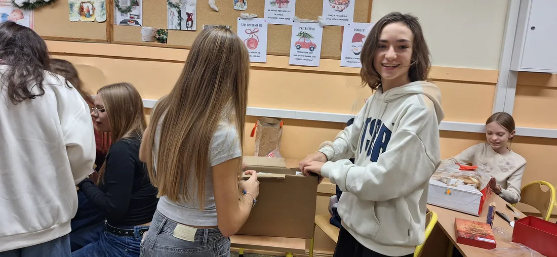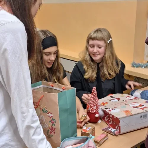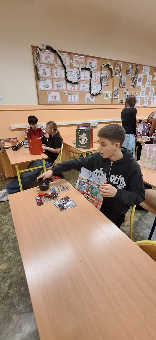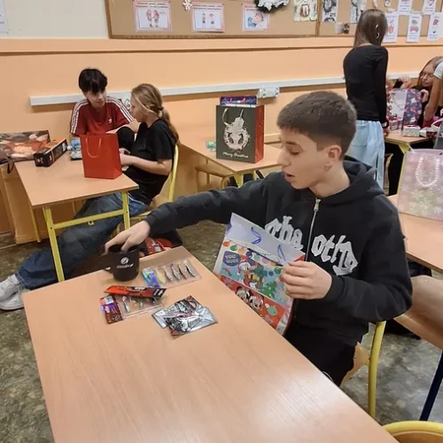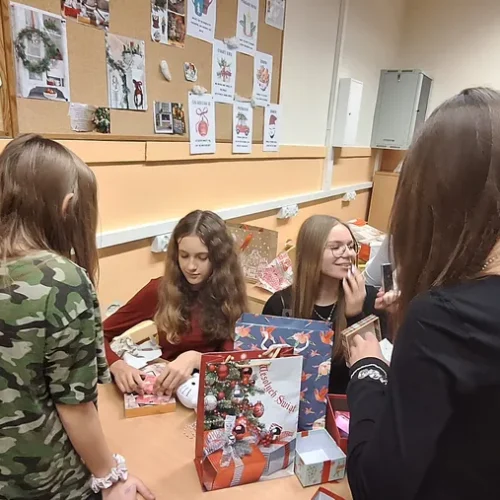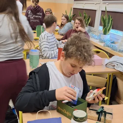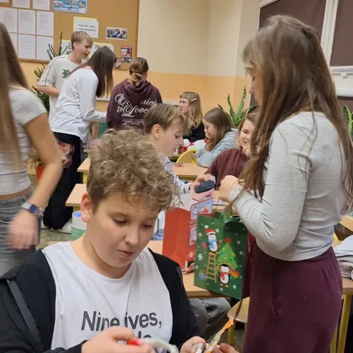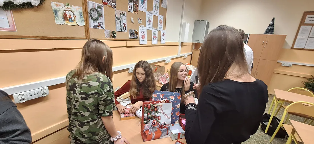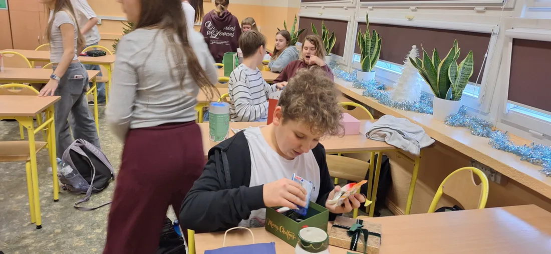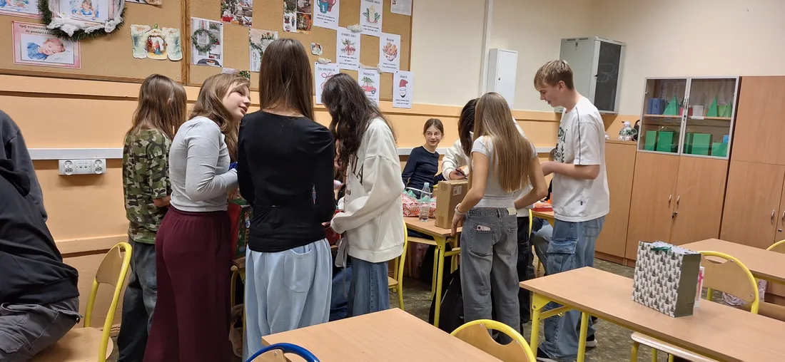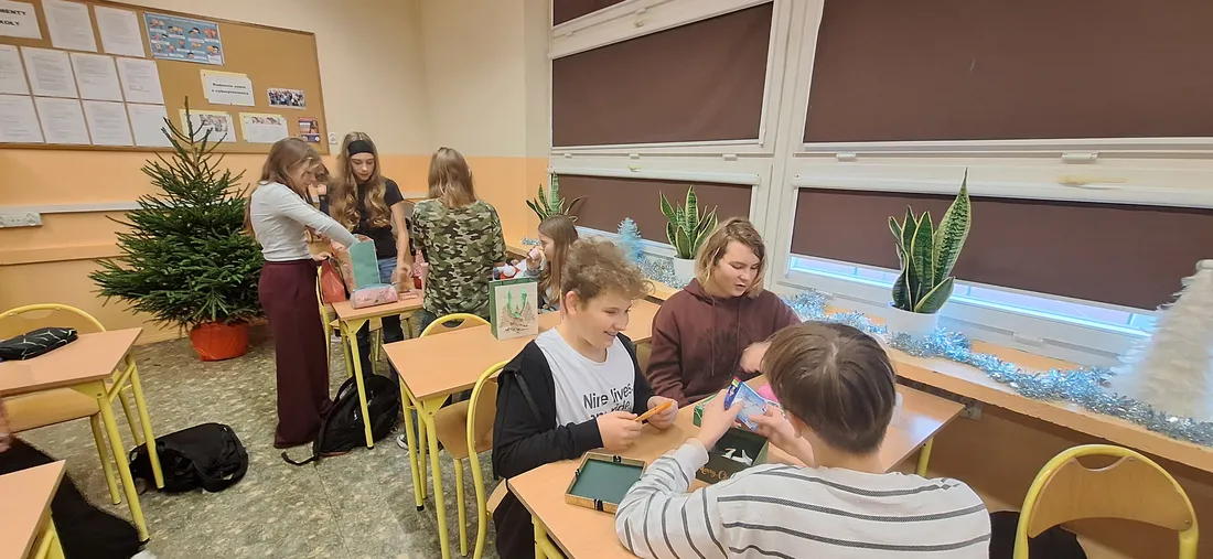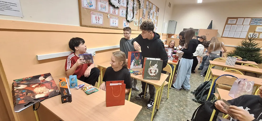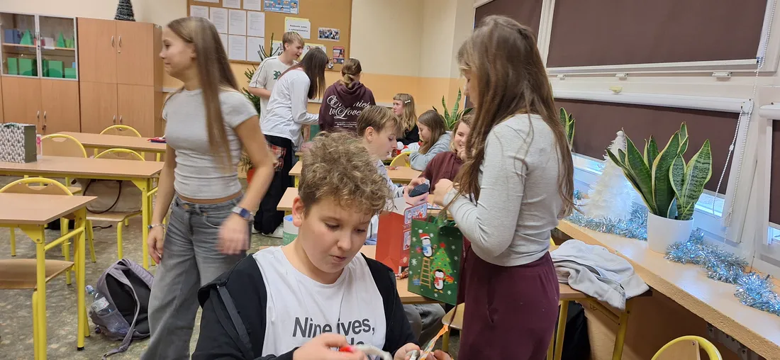 W klasie 7a odbyło się radosne rozdanie prezentów mikołajkowych. Uczniowie, zgodnie z tradycją, przygotowali dla siebie drobne upominki, które następnie trafiły do wyznaczonych wcześniej osób.