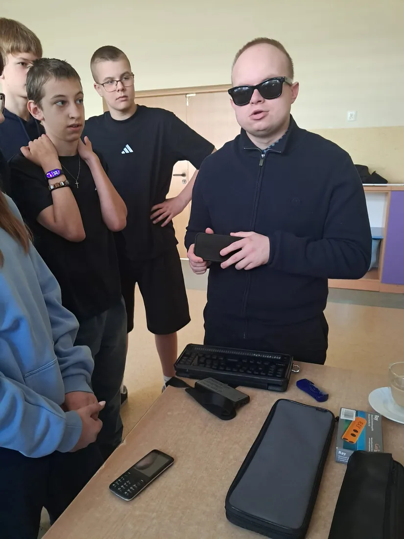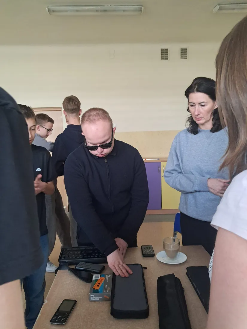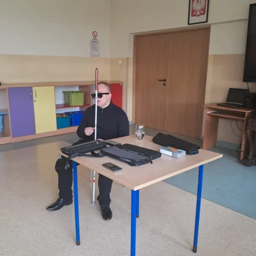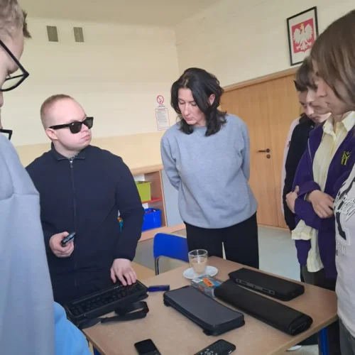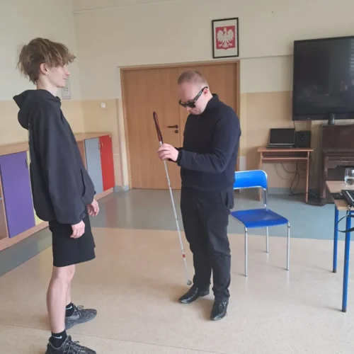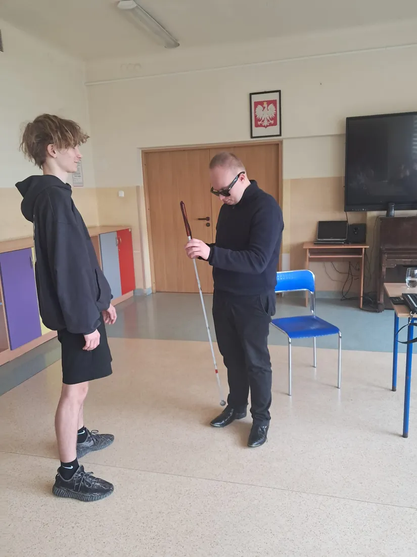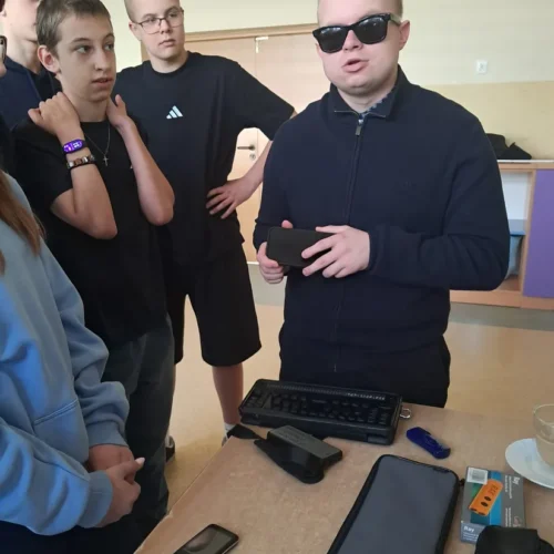 Podczas spotkania uczniowie mieli okazję dowiedzieć się, jak funkcjonują osoby niewidome w przestrzeni publicznej, jak korzystają z technologii oraz jak ważna jest pomoc i zrozumienie ze strony innych ludzi. Duże zainteresowanie wzbudziła prezentacja specjalistycznych narzędzi, takich jak biała laska czy urządzenia umożliwiające odczytywanie tekstu.