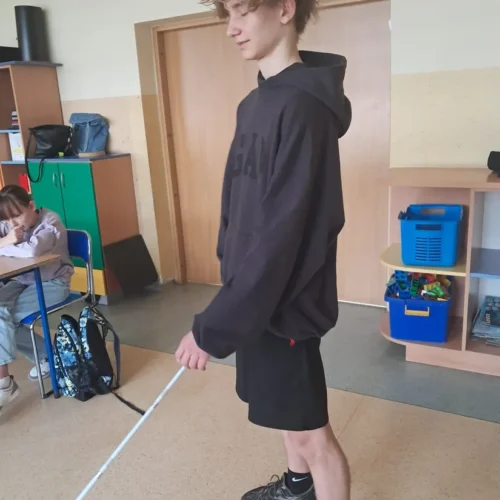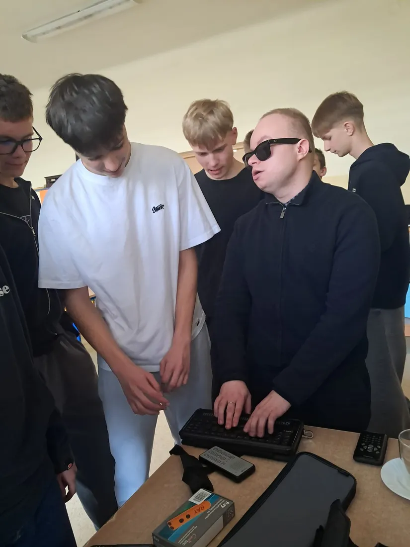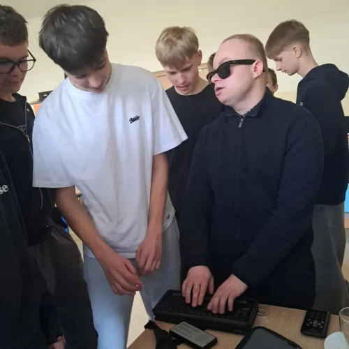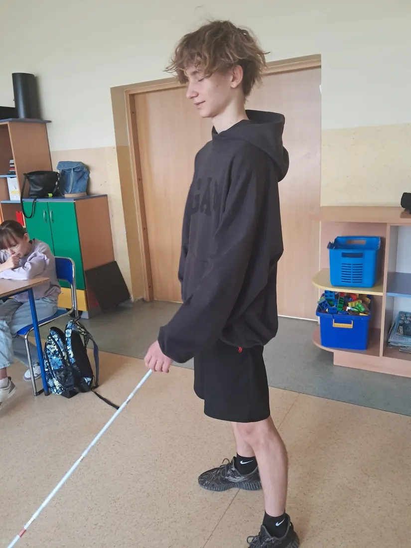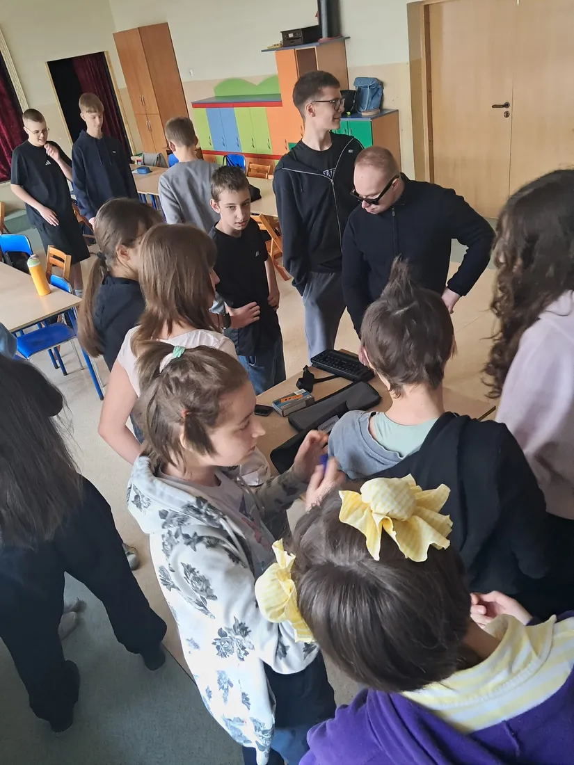 Podczas spotkania uczniowie mieli okazję dowiedzieć się, jak funkcjonują osoby niewidome w przestrzeni publicznej, jak korzystają z technologii oraz jak ważna jest pomoc i zrozumienie ze strony innych ludzi. Duże zainteresowanie wzbudziła prezentacja specjalistycznych narzędzi, takich jak biała laska czy urządzenia umożliwiające odczytywanie tekstu.