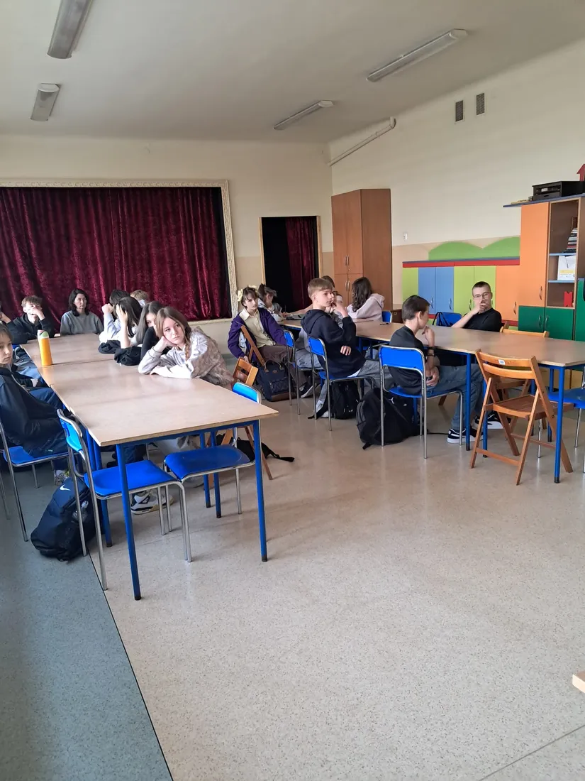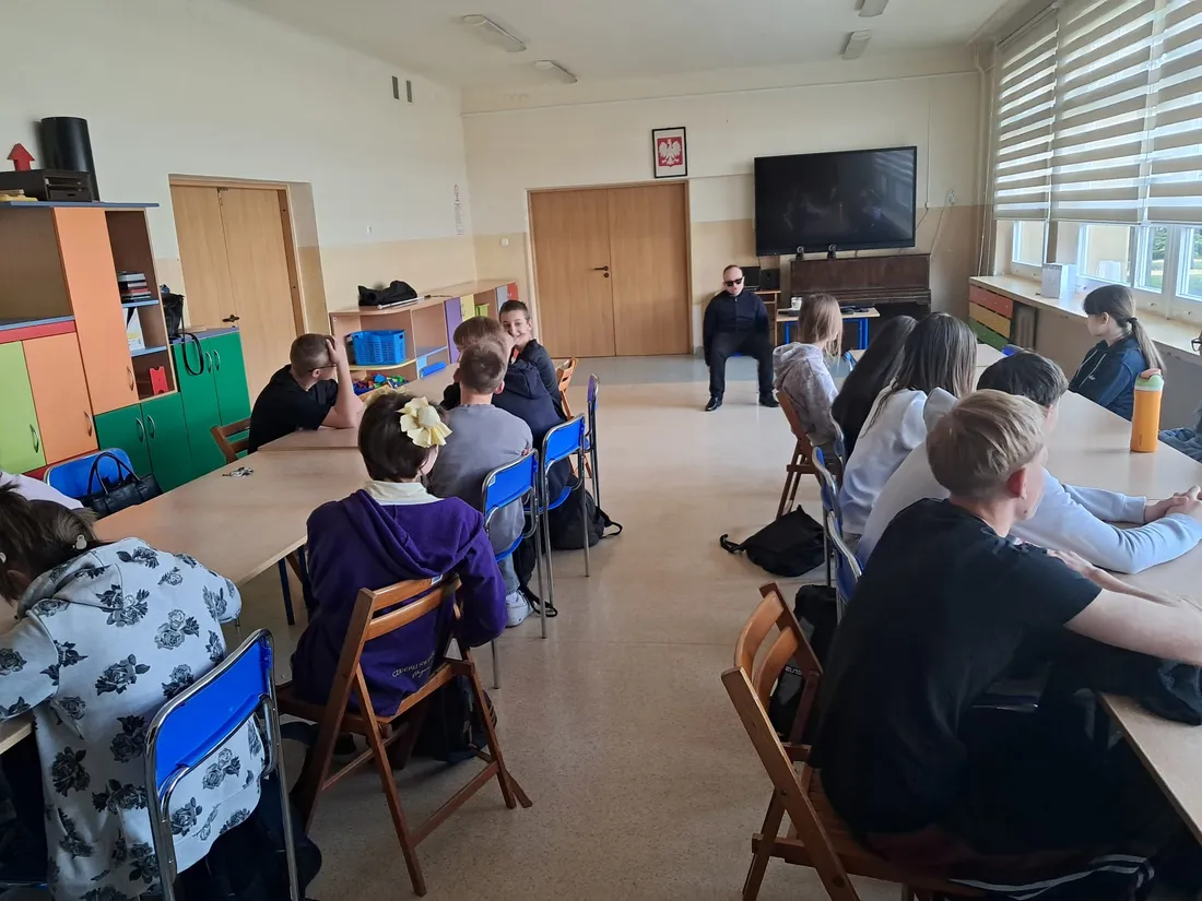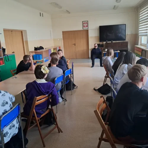 We wtorek 24.03.2026 w naszej szkole odbyło się wyjątkowe spotkanie z panem Michałem Brajerem – osobą niewidomą, które było dla uczniów wartościowym doświadczeniem. Gość opowiedział o swoim codziennym życiu, wyzwaniach, z jakimi się mierzy oraz sposobach radzenia sobie w różnych sytuacjach.