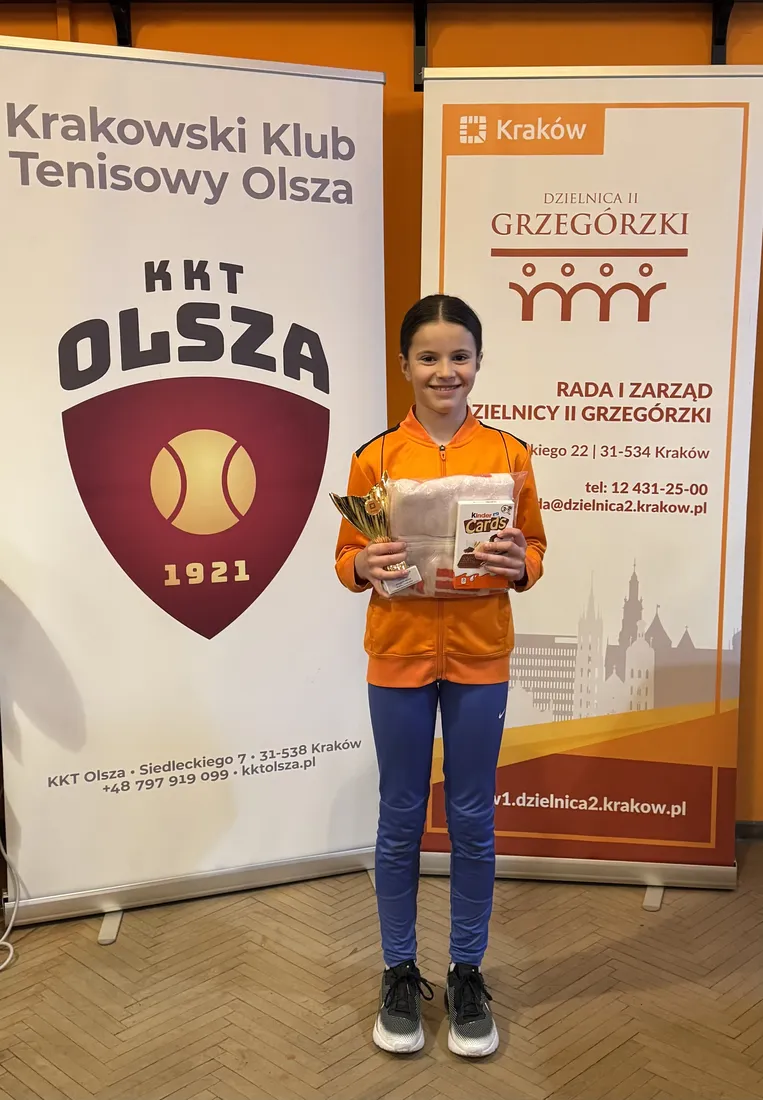 Natomiast w miniony weekend zwyciężyła w turnieju organizowanym przez Krakowski Klub Tenisowy Olsza, zajmując I miejsce na podium. Gratulujemy i życzymy dalszych sukcesów!