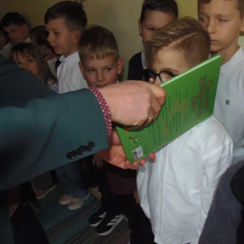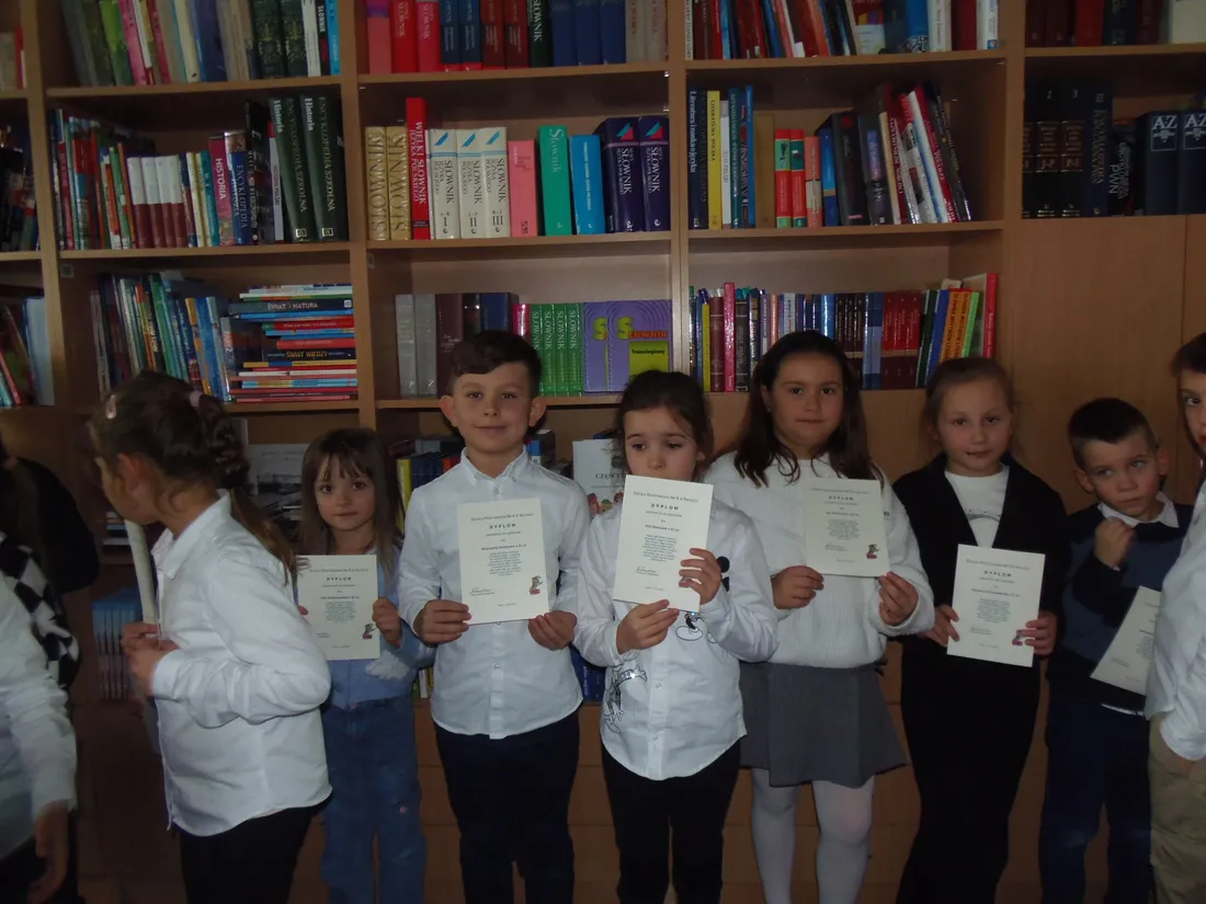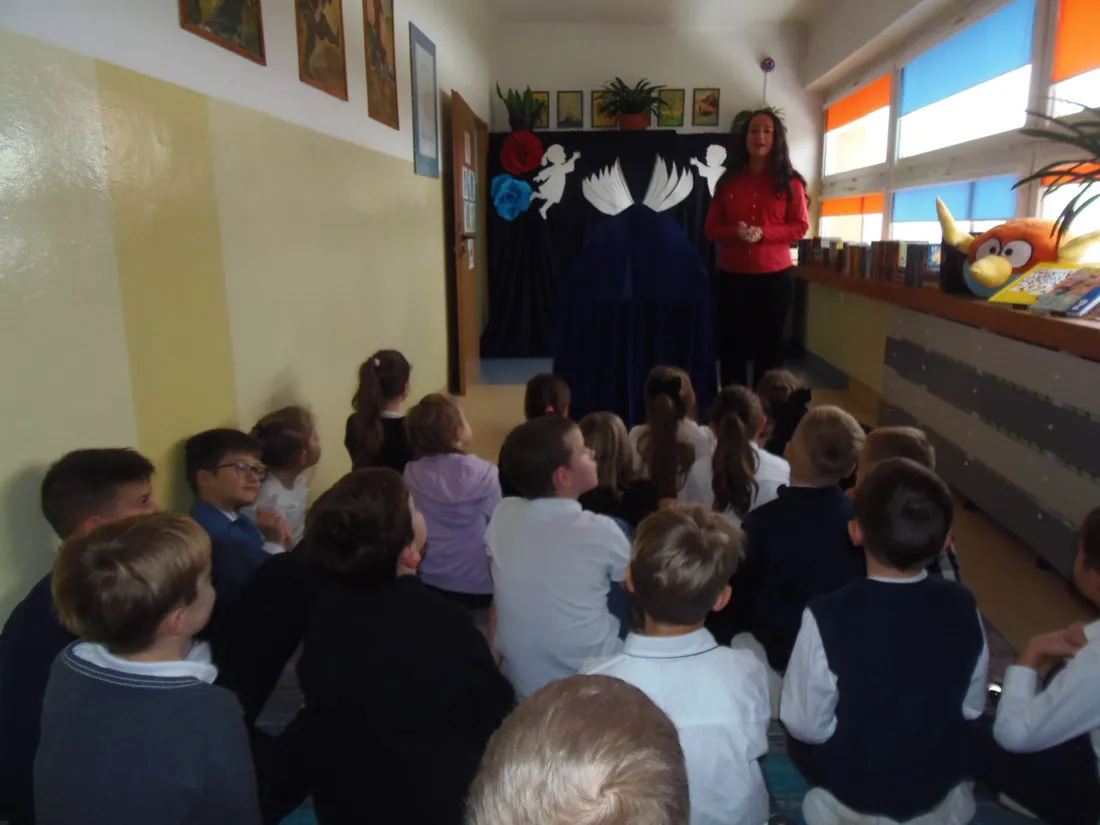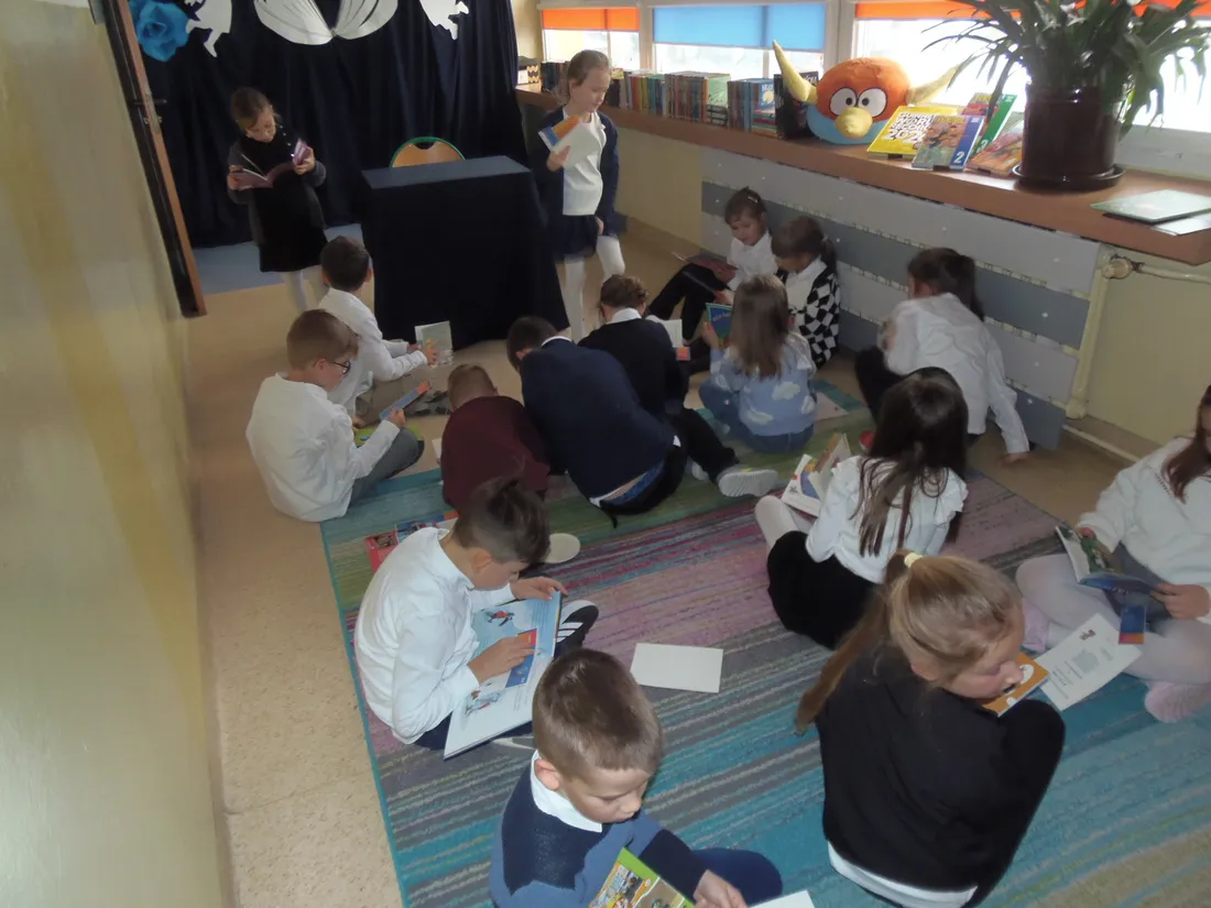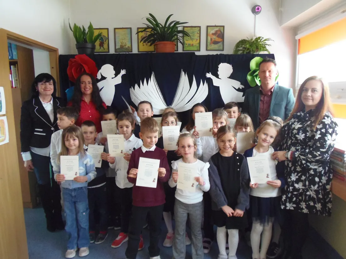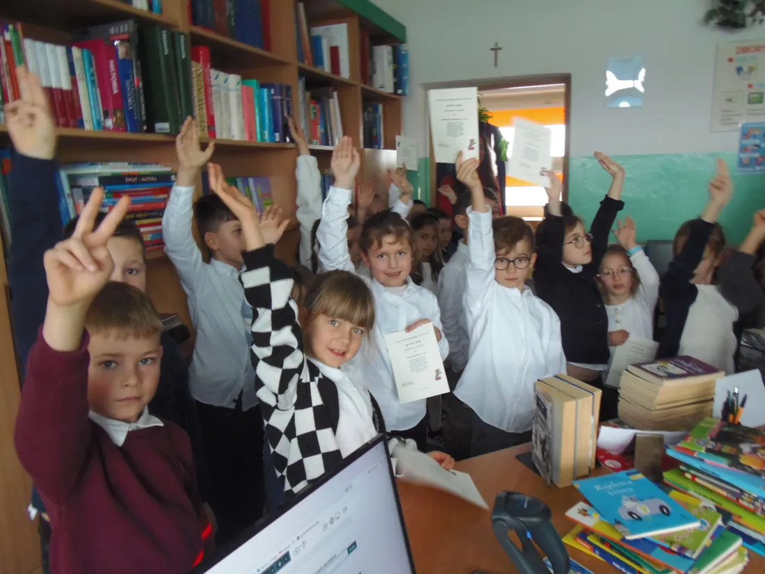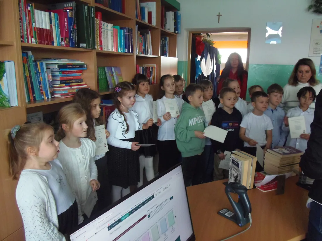 2 grudnia 2025 roku nasi pierwszoklasiści zostali przyjęci w poczet czytelników biblioteki szkolnej. Podczas uroczystości uczniowie obejrzeli teatrzyk Kamishibai zaprezentowany przez zaproszonego gościa panią Agatę Trzęsowską z Książnicy Pedagogicznej w Kaliszu.