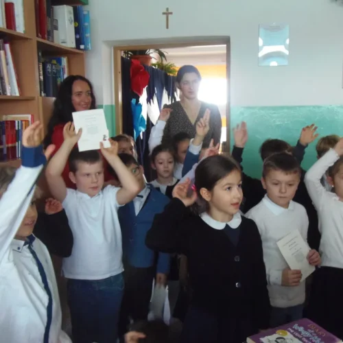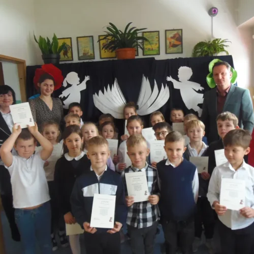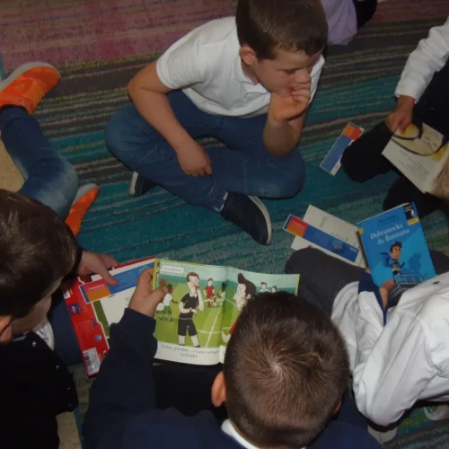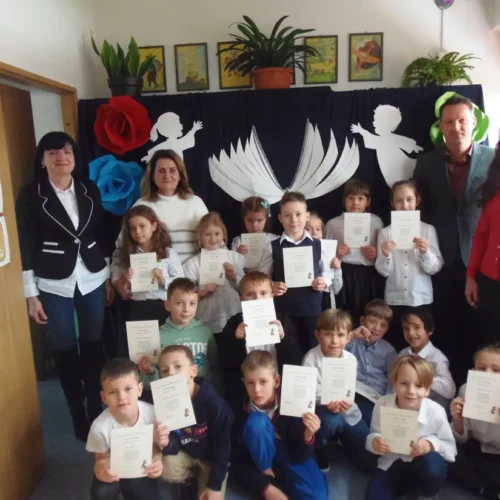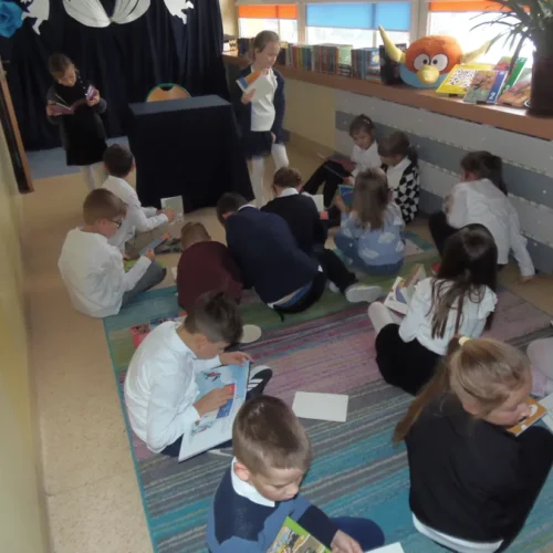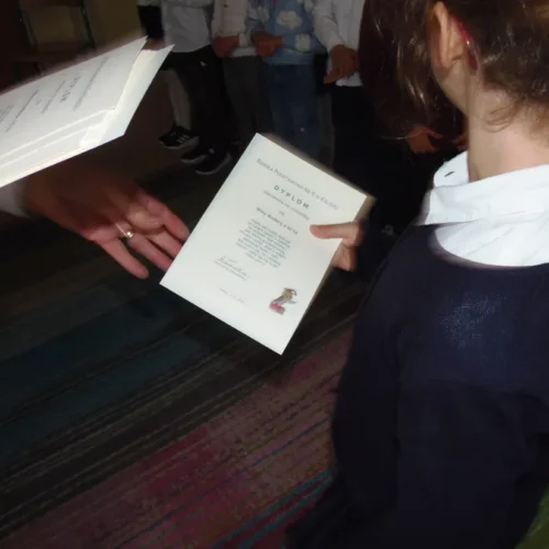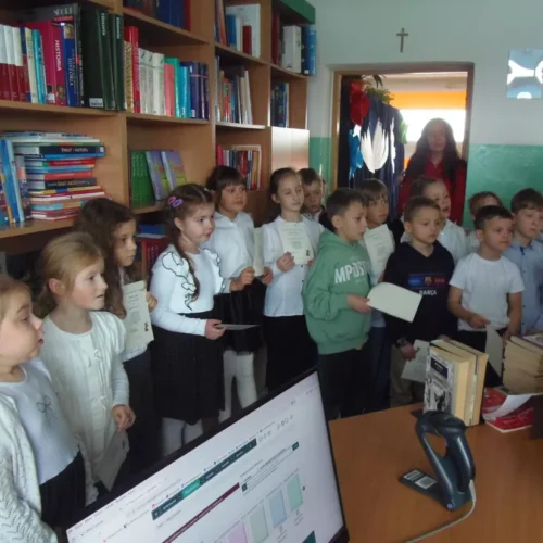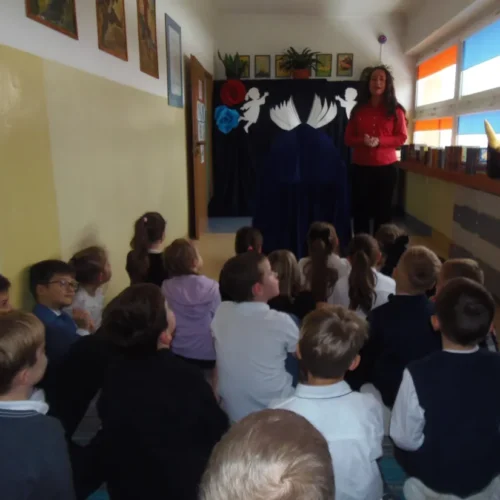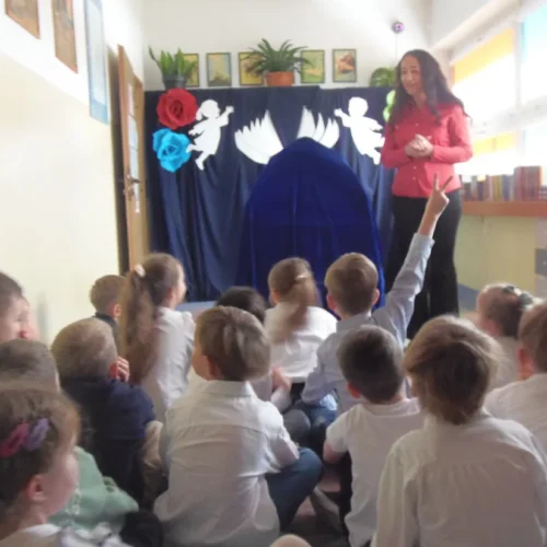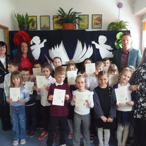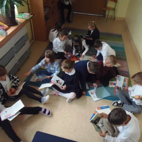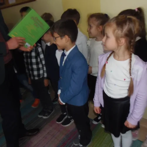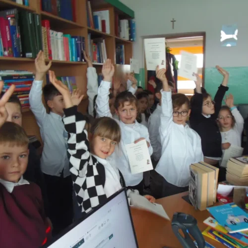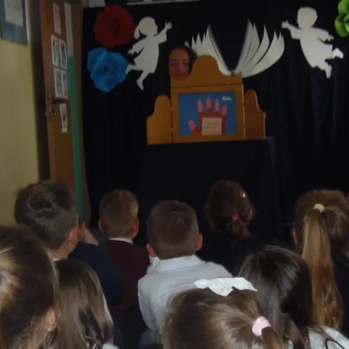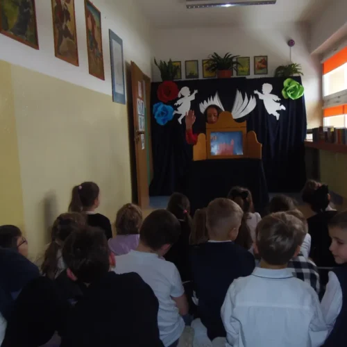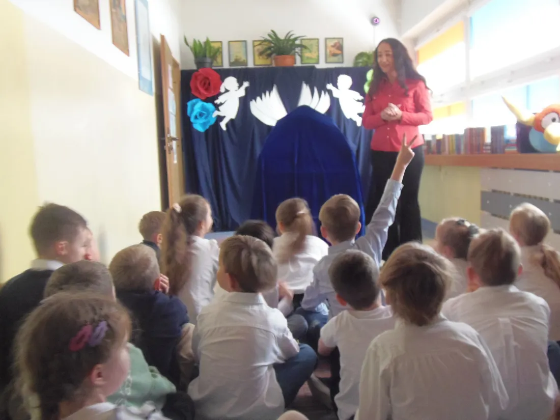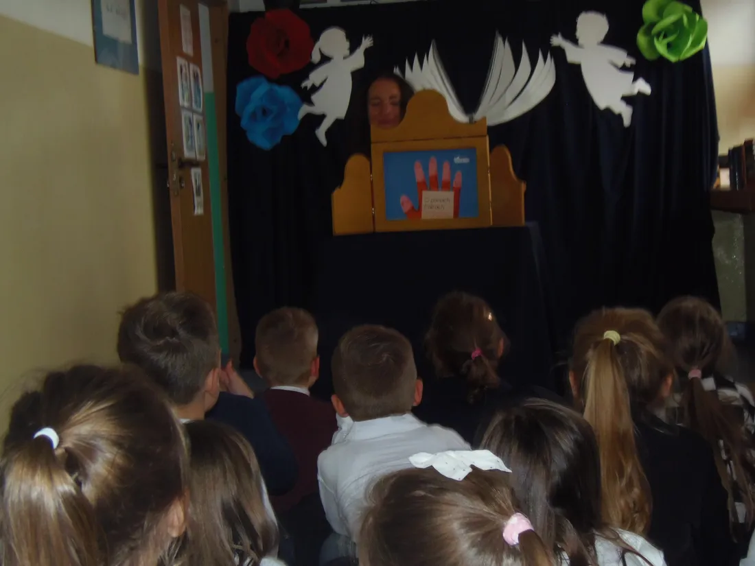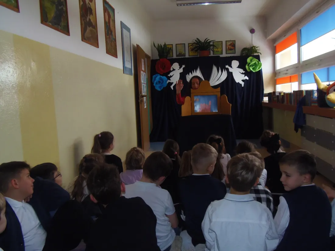 2 grudnia 2025 roku nasi pierwszoklasiści zostali przyjęci w poczet czytelników biblioteki szkolnej. Podczas uroczystości uczniowie obejrzeli teatrzyk Kamishibai zaprezentowany przez zaproszonego gościa panią Agatę Trzęsowską z Książnicy Pedagogicznej w Kaliszu.