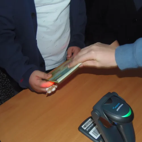 Pan Dyrektor Emil Jesiołowski dokonał uroczystego pasowania każdego czytelnika. Uwieńczeniem spotkania było wspólne zdjęcie.