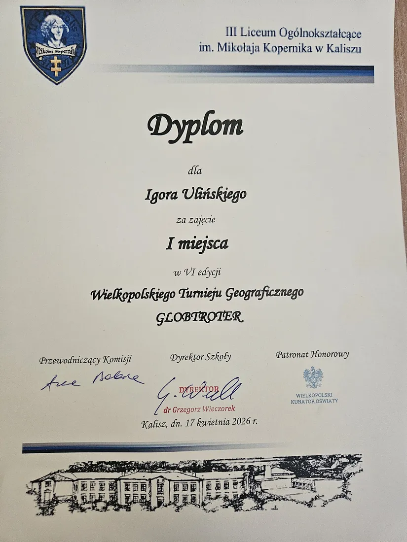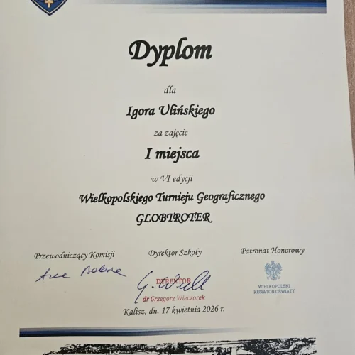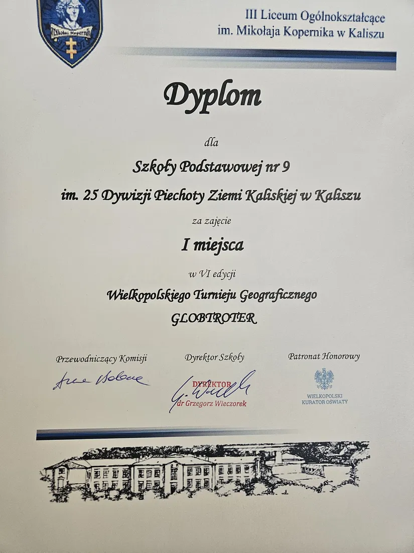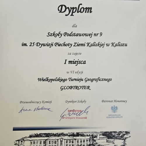 Uczniowie Szkoły Podstawowej nr 9 odnieśli duży sukces w VI Wielkopolskim Międzyszkolnym Turnieju Geograficznym „Globtroter”, objętym honorowym patronatem Wielkopolskiego Kuratora Oświaty.