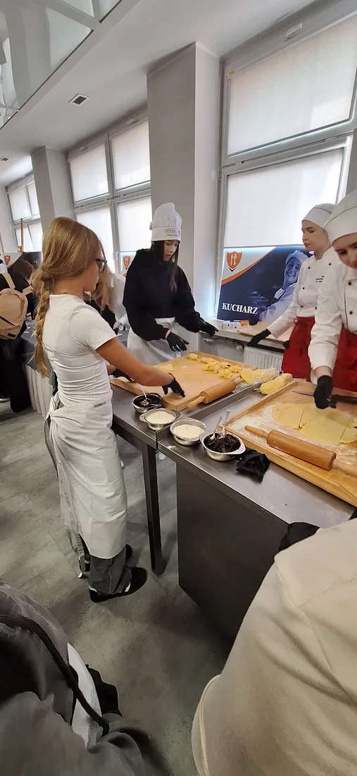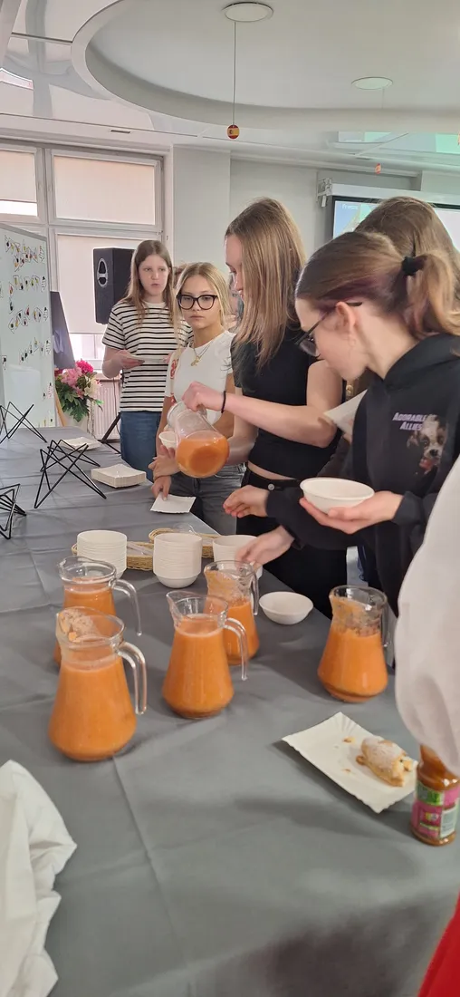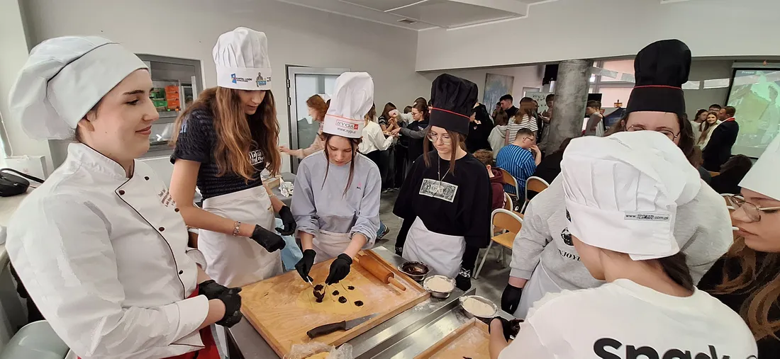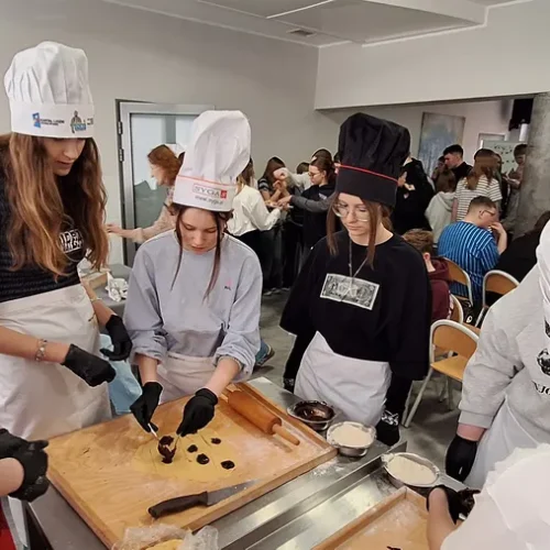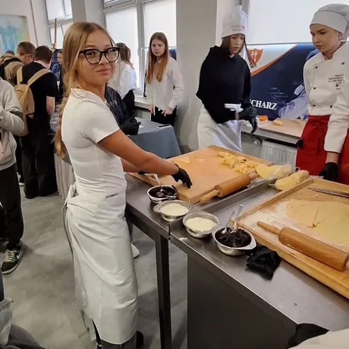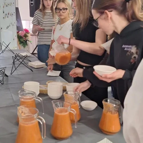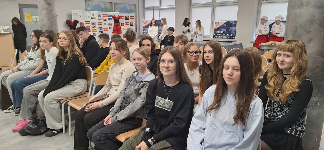 Podczas spotkania pt. „Z tapas na talerzu – tradycje i smaki gorącej Hiszpanii” uczniowie mieli okazję poznać kulturę oraz geografię Hiszpanii, a także odkrywać charakterystyczne dla tego kraju smaki. Warsztaty były doskonałą okazją do połączenia nauki z praktyką – uczestnicy mogli zobaczyć, jak wygląda praca w szkolnej pracowni gastronomicznej oraz spróbować przygotowanych potraw.