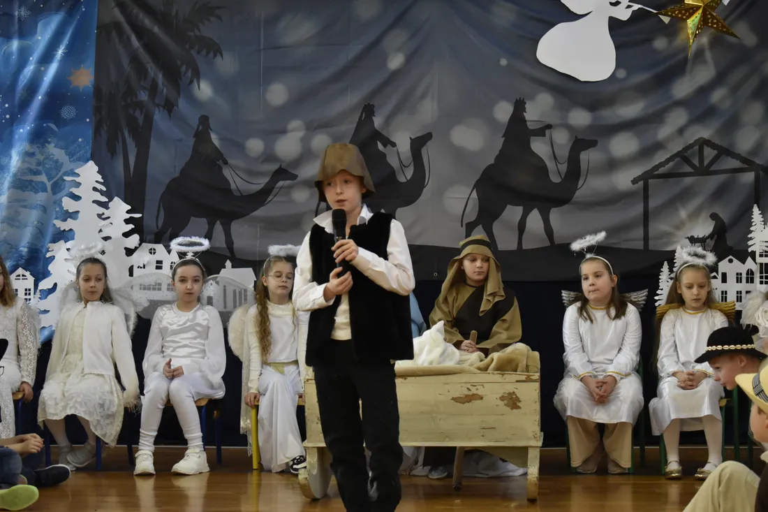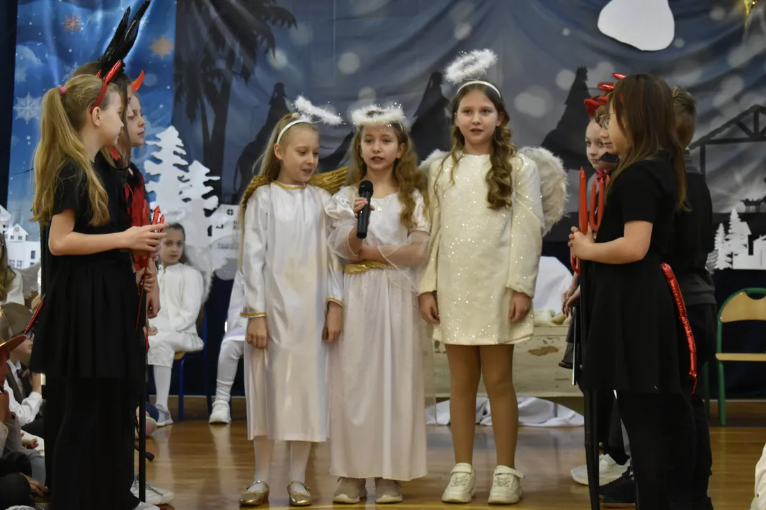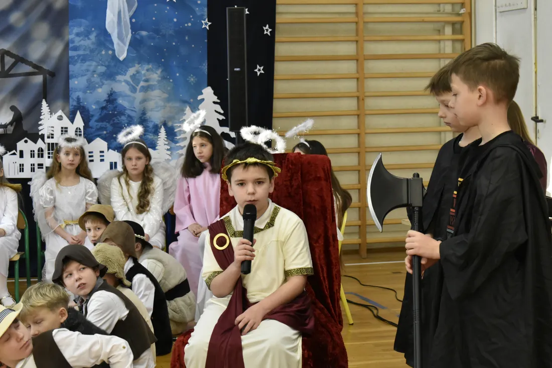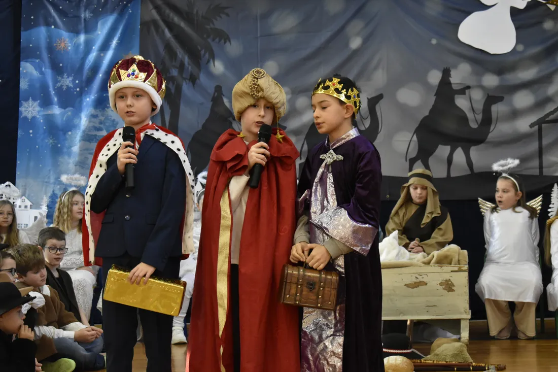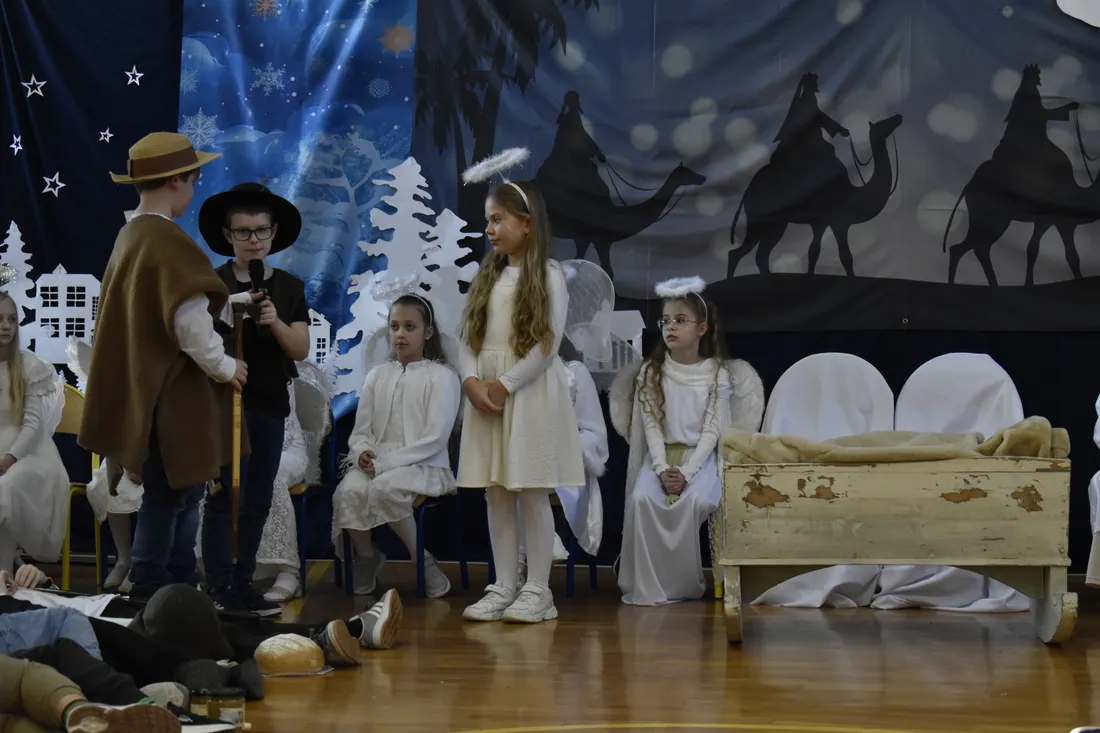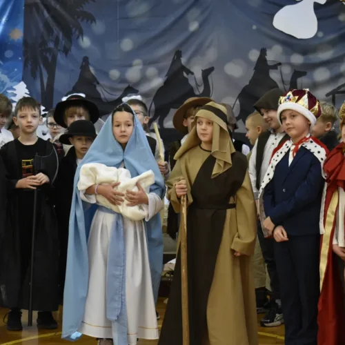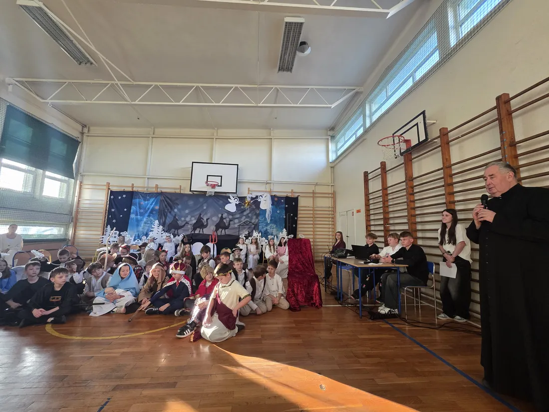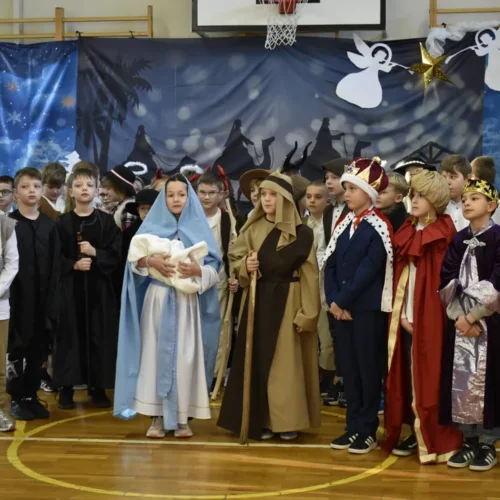 W piątek w naszej szkole odbyły się jasełka bożonarodzeniowe pt. „Wesoła Nowina”, przygotowane przez uczniów klas trzecich. Przedstawienie w piękny i radosny sposób ukazało prawdę o narodzinach Jezusa, niosąc przesłanie nadziei, miłości i pokoju.