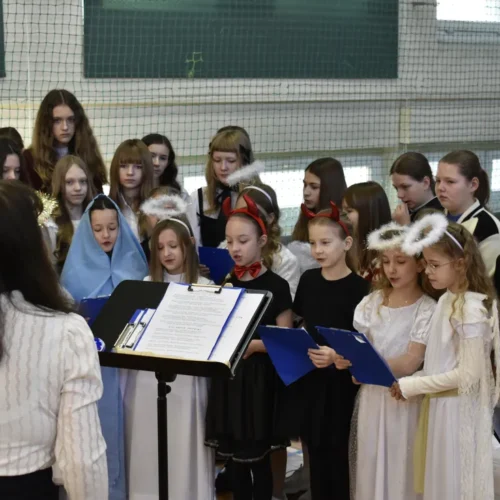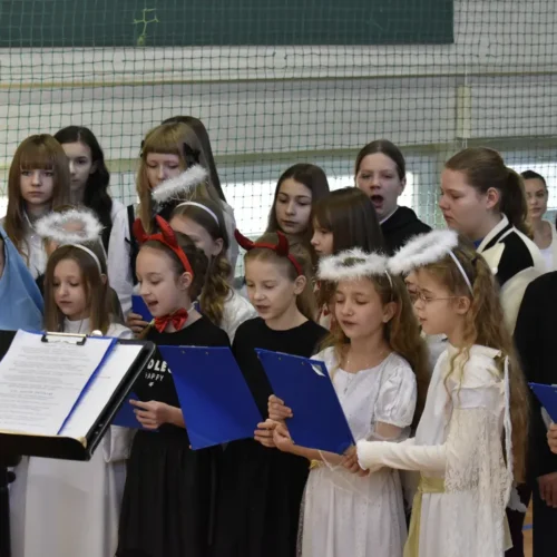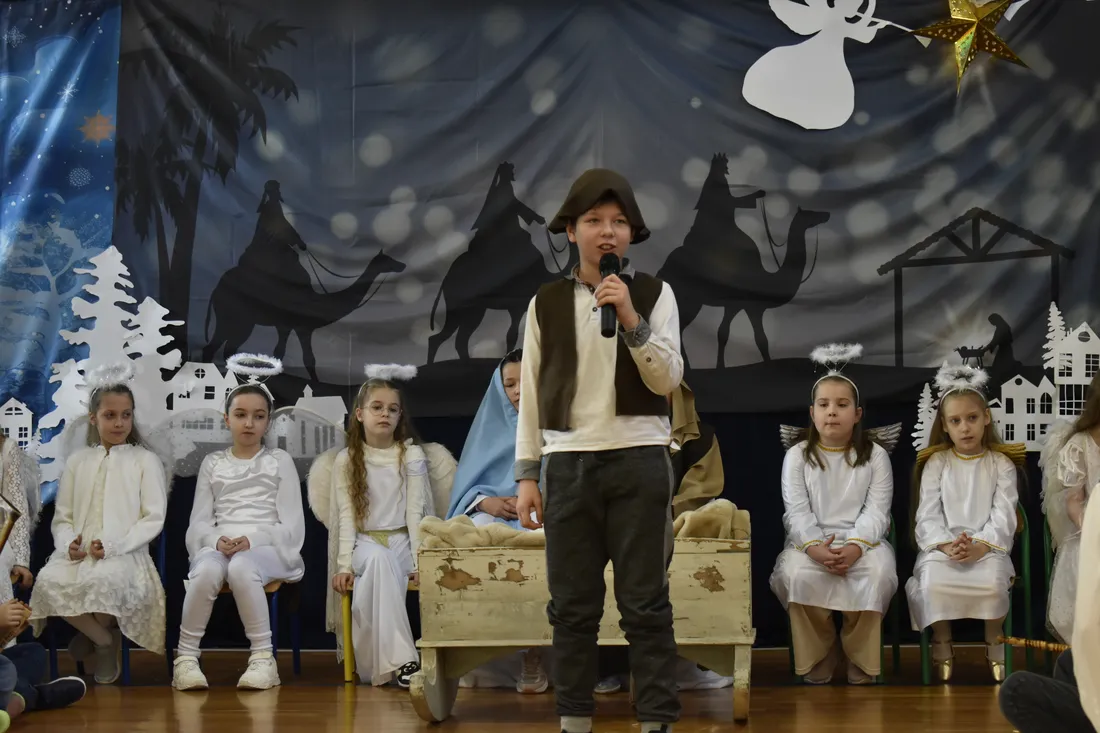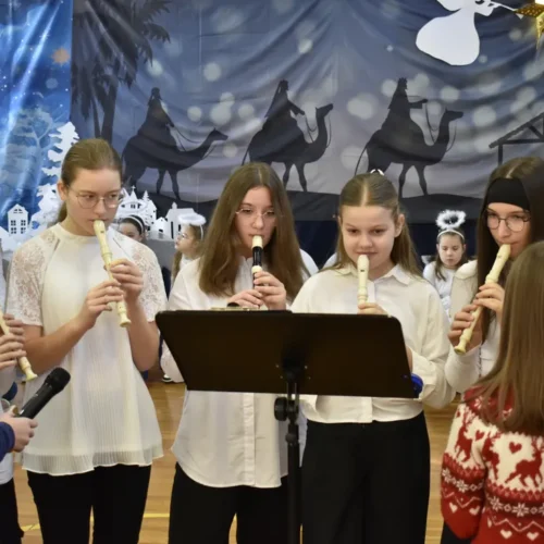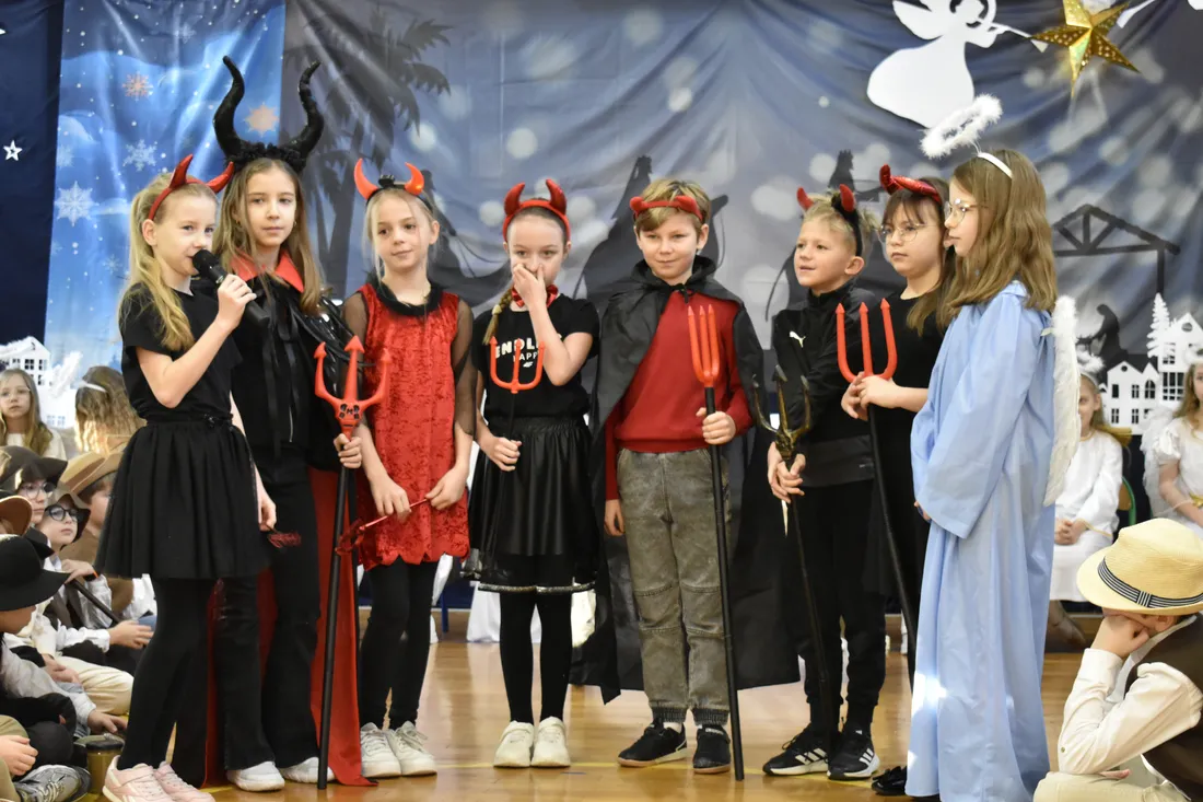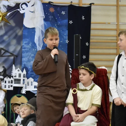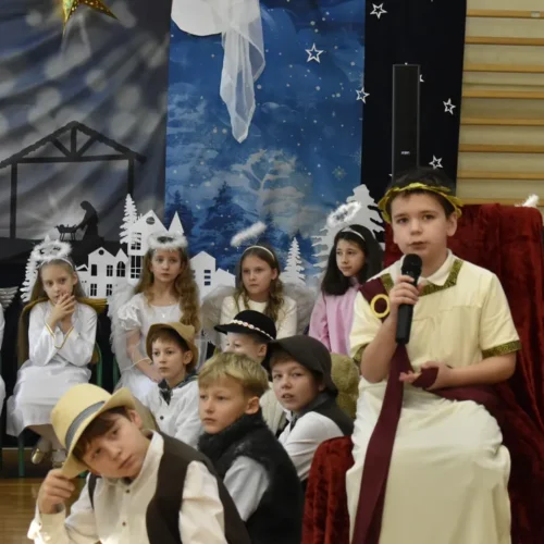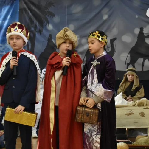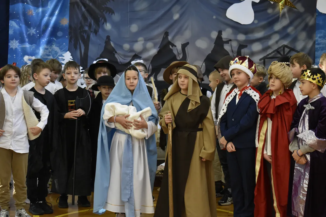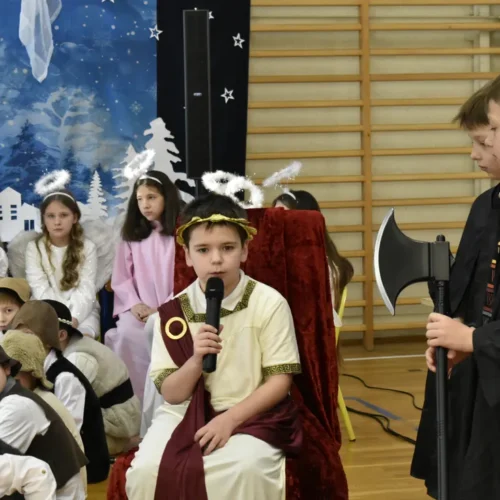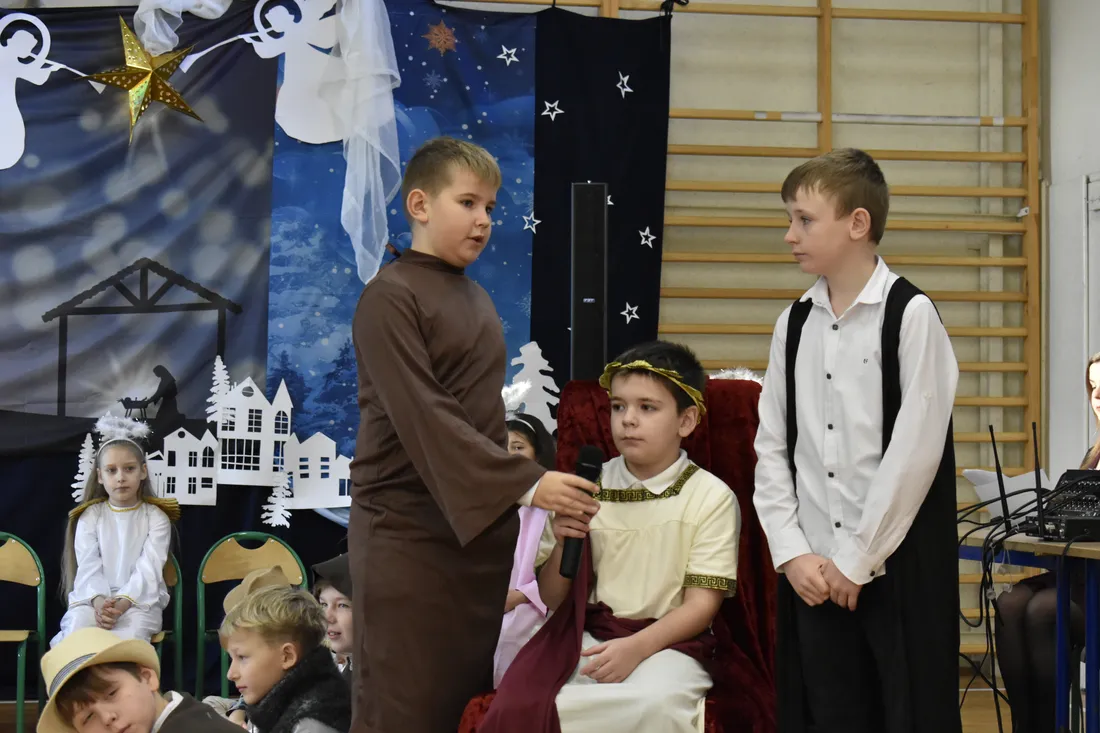 W piątek w naszej szkole odbyły się jasełka bożonarodzeniowe pt. „Wesoła Nowina”, przygotowane przez uczniów klas trzecich. Przedstawienie w piękny i radosny sposób ukazało prawdę o narodzinach Jezusa, niosąc przesłanie nadziei, miłości i pokoju.