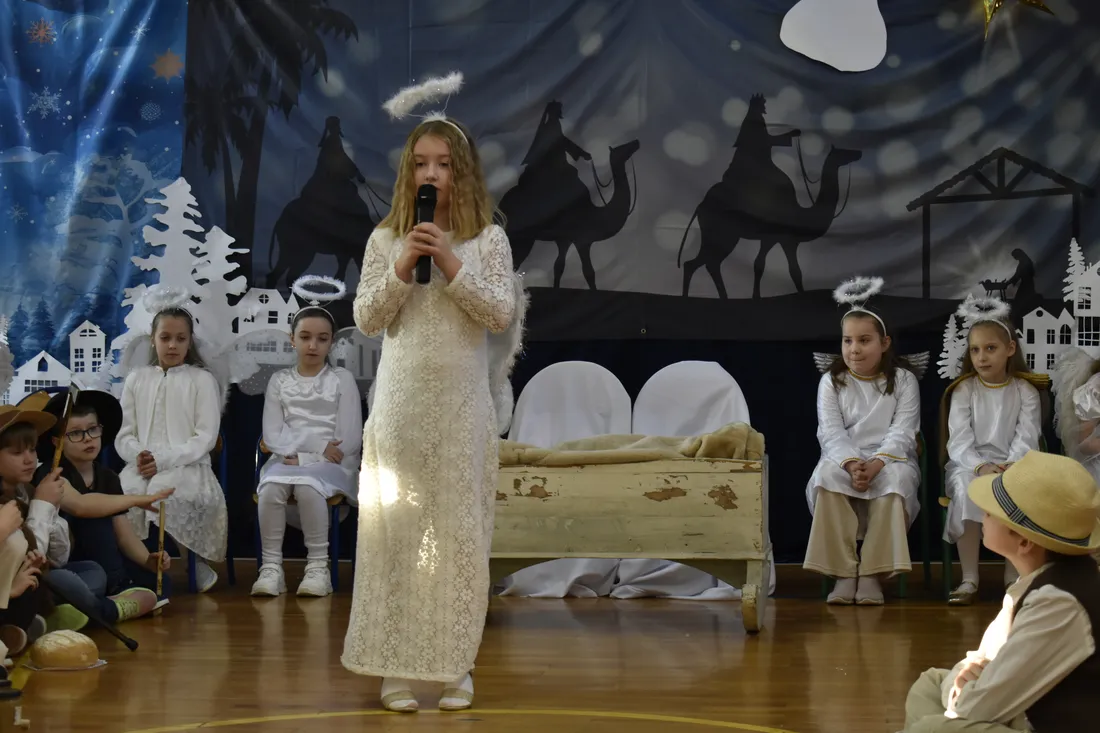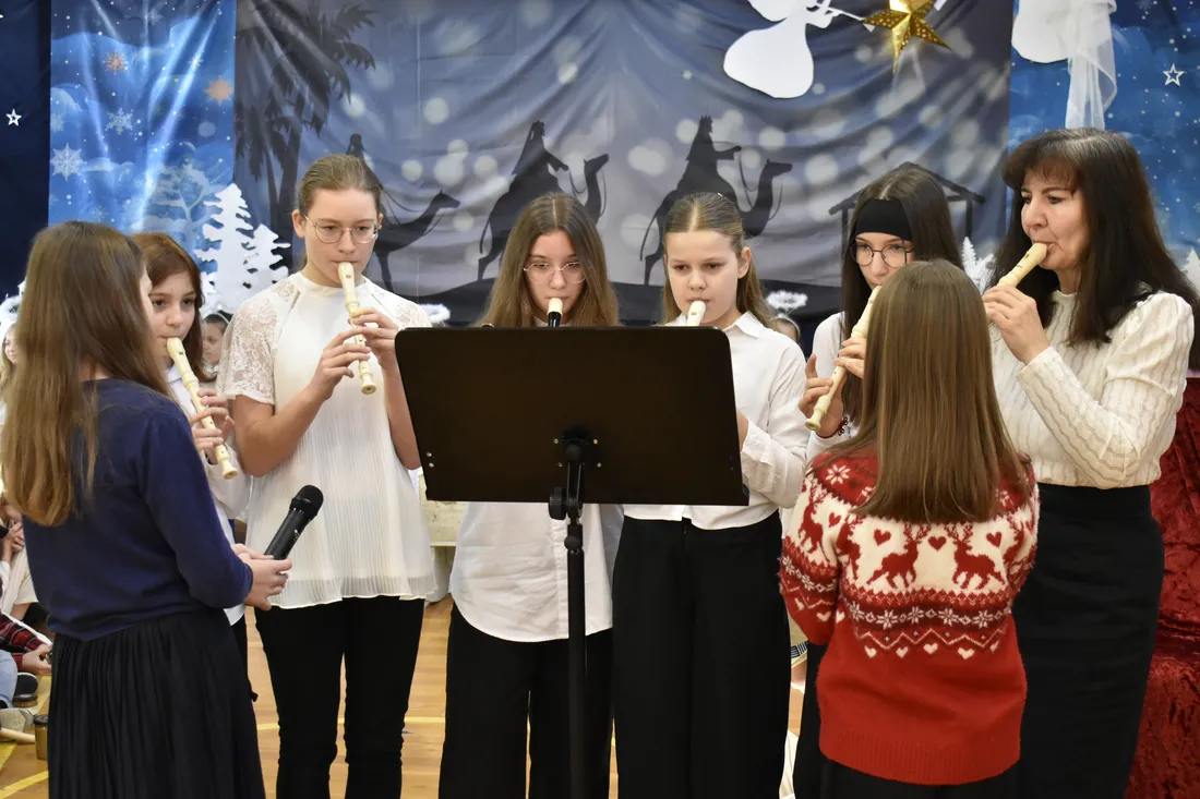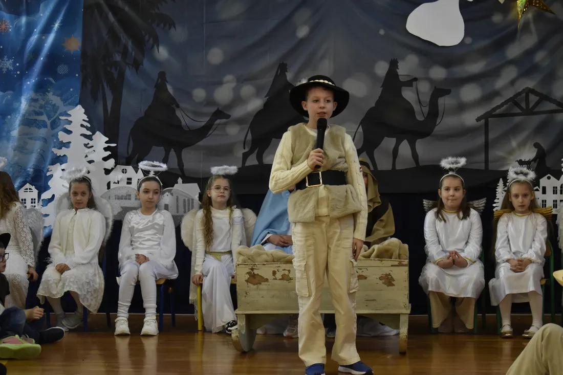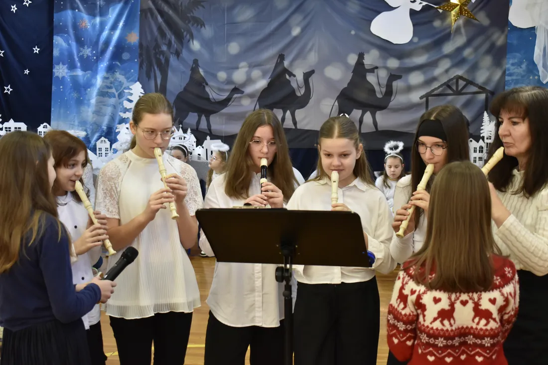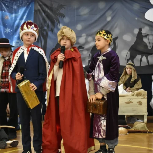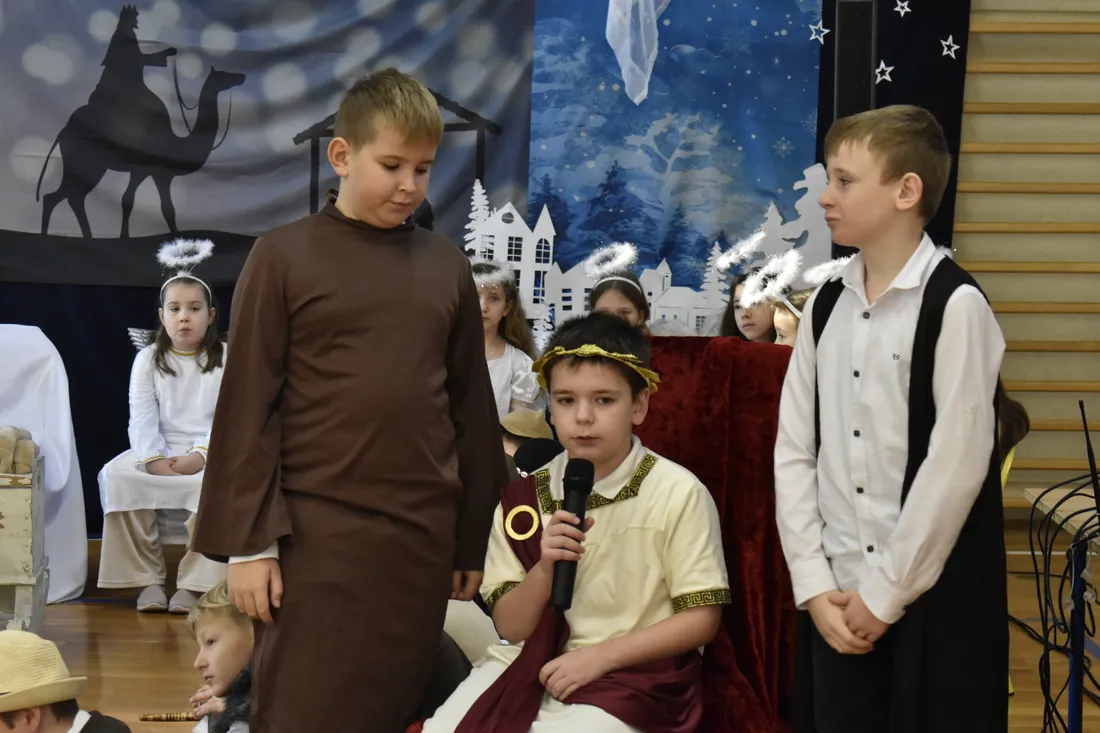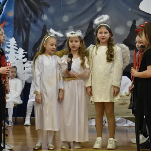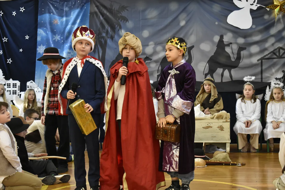 W piątek w naszej szkole odbyły się jasełka bożonarodzeniowe pt. „Wesoła Nowina”, przygotowane przez uczniów klas trzecich. Przedstawienie w piękny i radosny sposób ukazało prawdę o narodzinach Jezusa, niosąc przesłanie nadziei, miłości i pokoju.