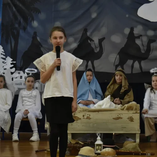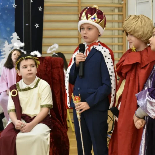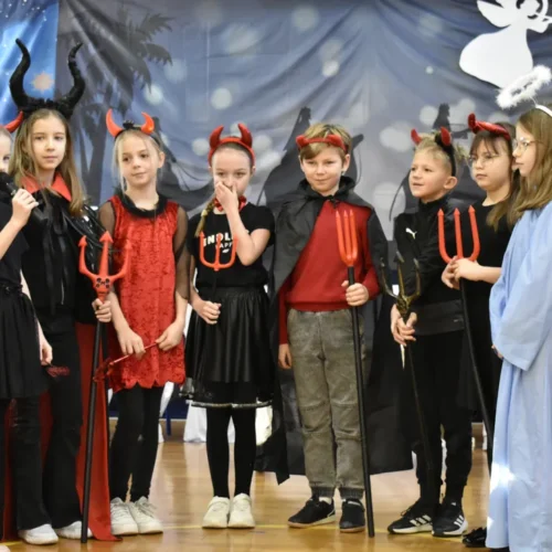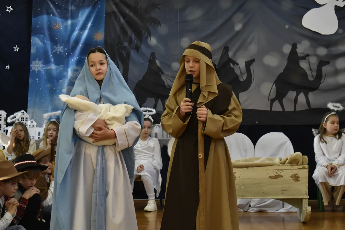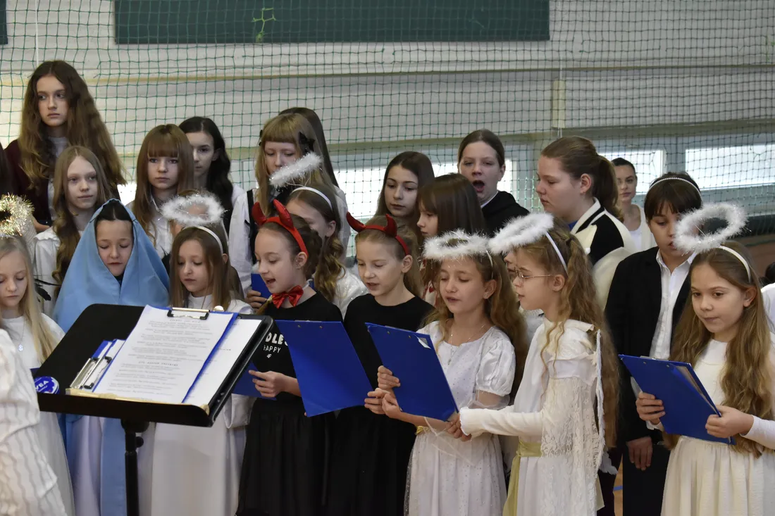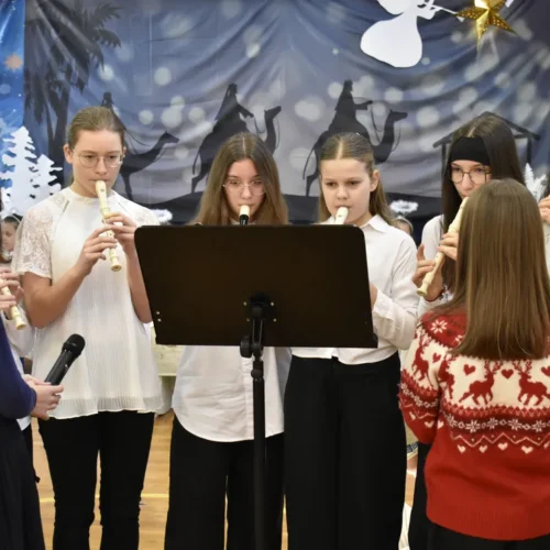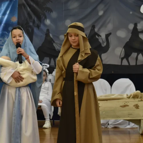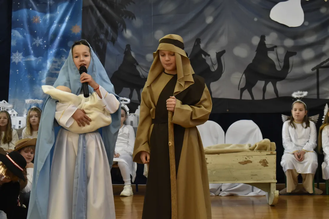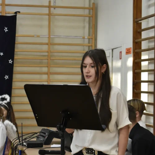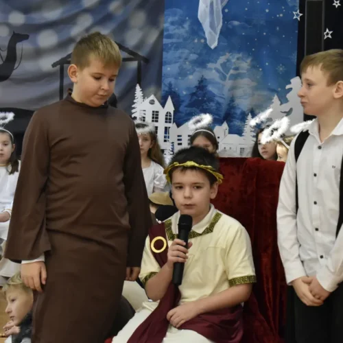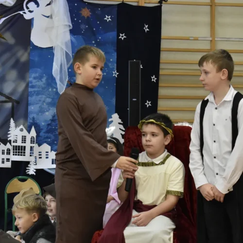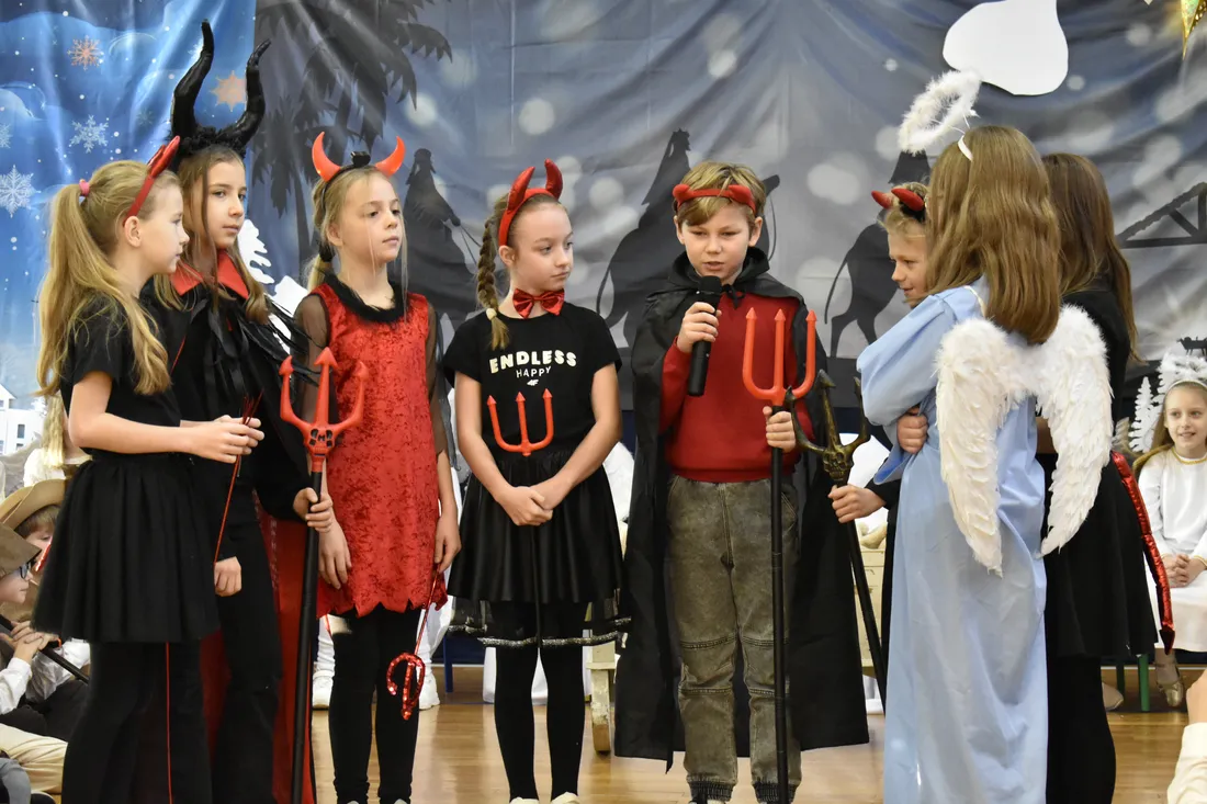 W piątek w naszej szkole odbyły się jasełka bożonarodzeniowe pt. „Wesoła Nowina”, przygotowane przez uczniów klas trzecich. Przedstawienie w piękny i radosny sposób ukazało prawdę o narodzinach Jezusa, niosąc przesłanie nadziei, miłości i pokoju.
