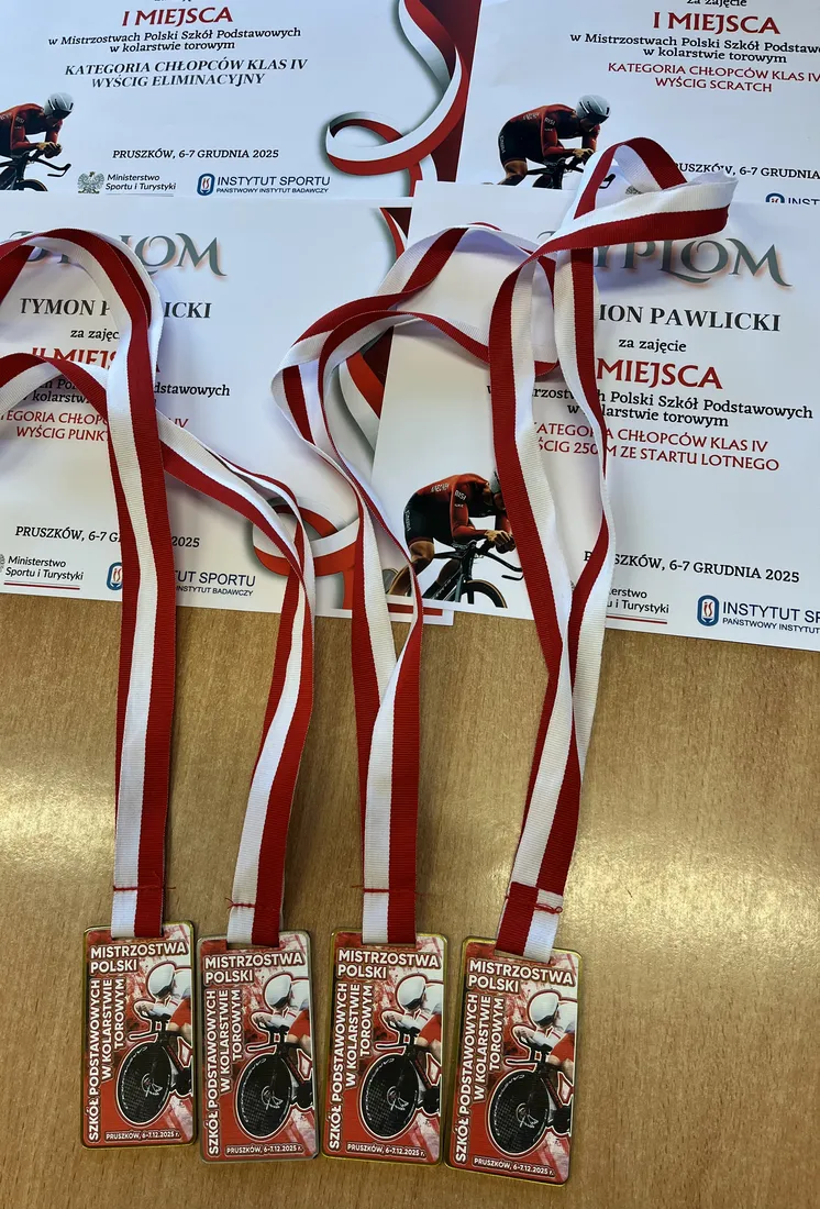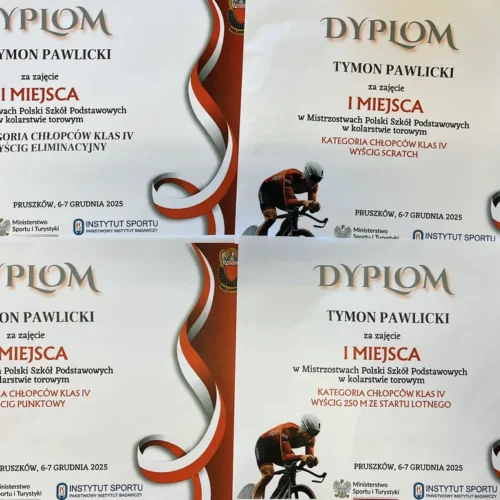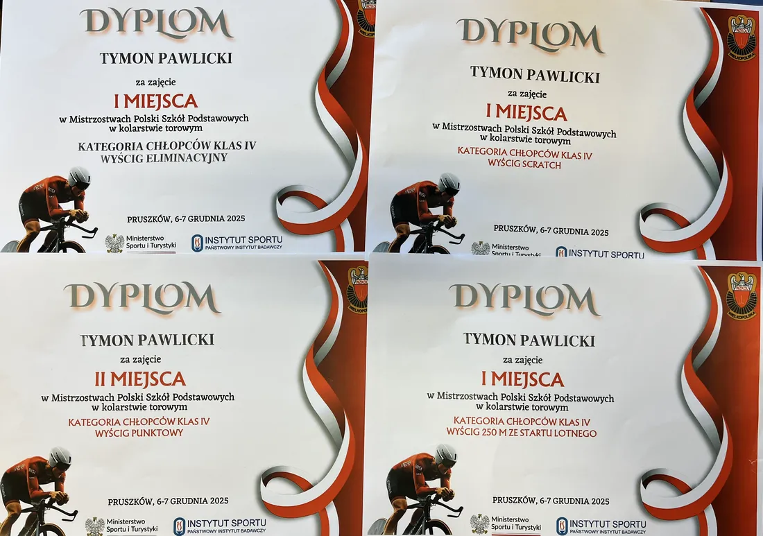Uczeń naszej szkoły, Tymon Pawlicki z klasy 4a, odniósł ogromny sukces podczas Mistrzostw Polski Szkół Podstawowych w kolarstwie torowym