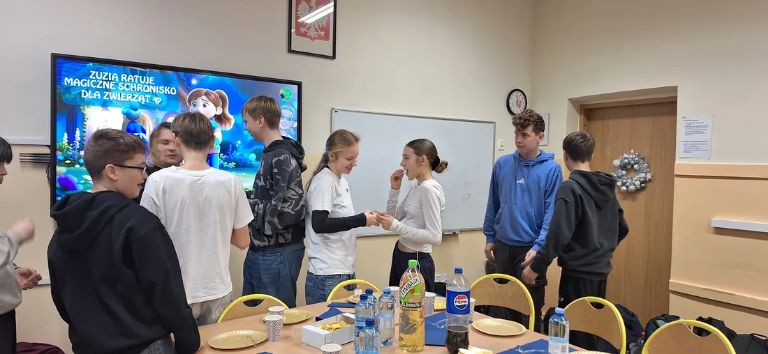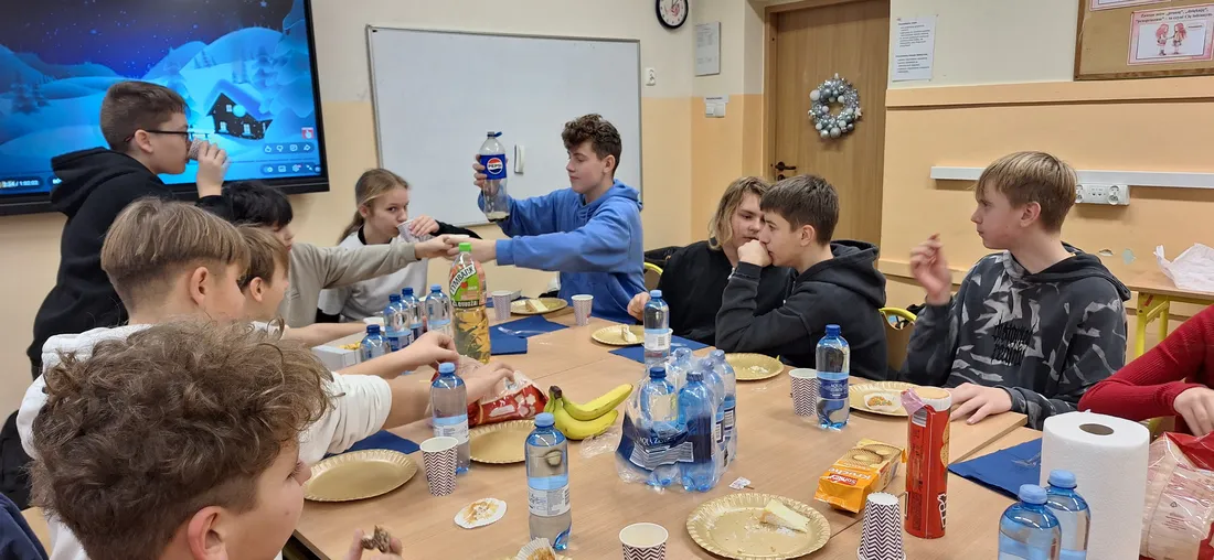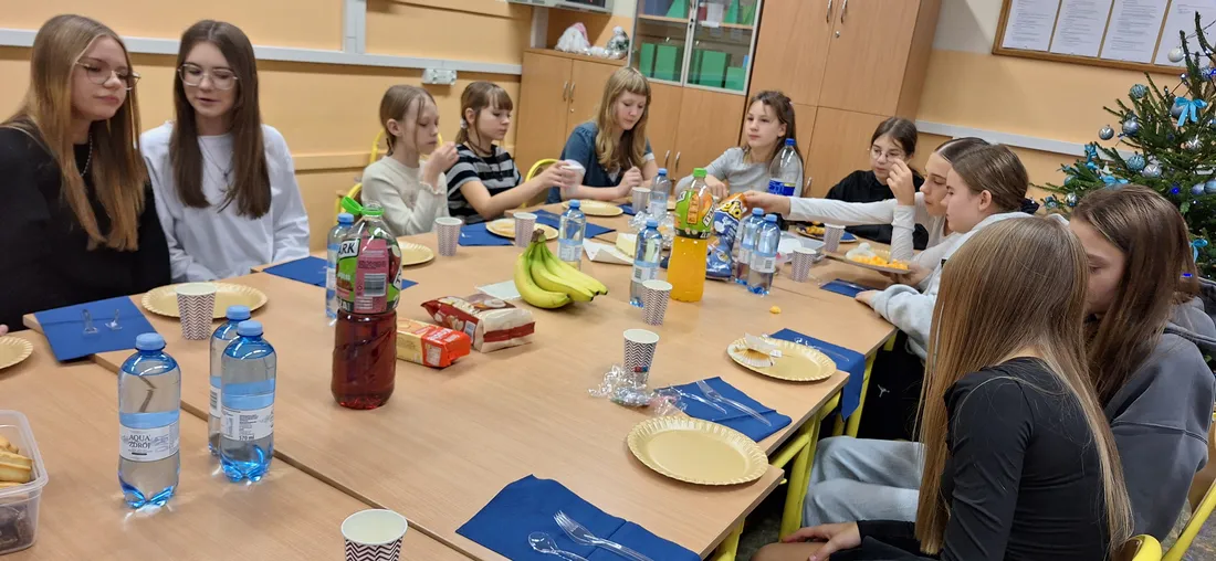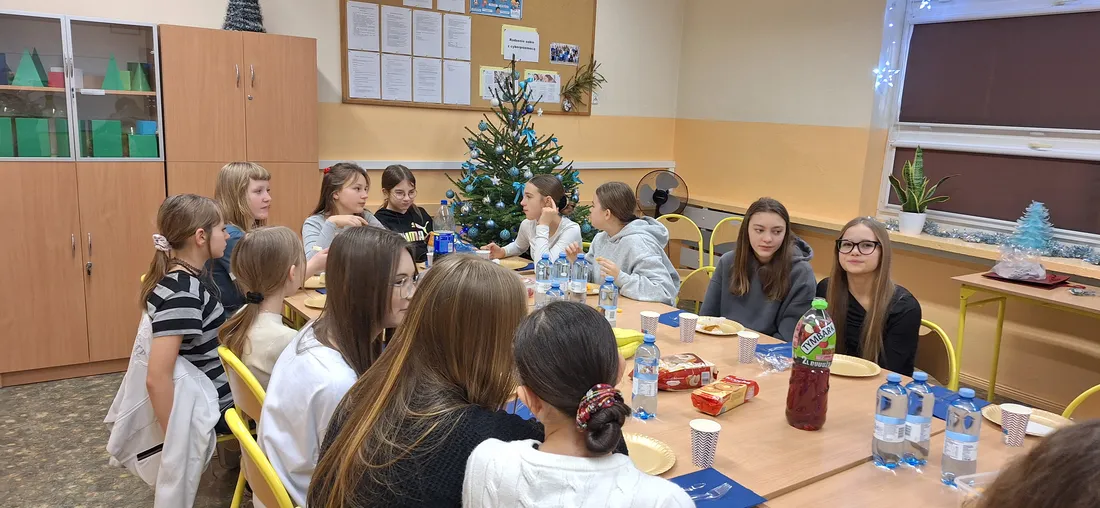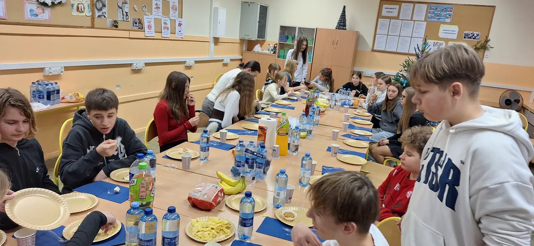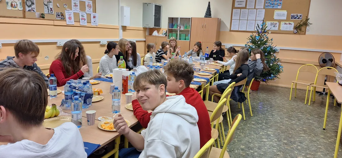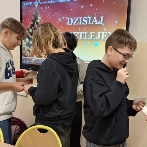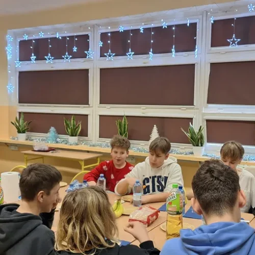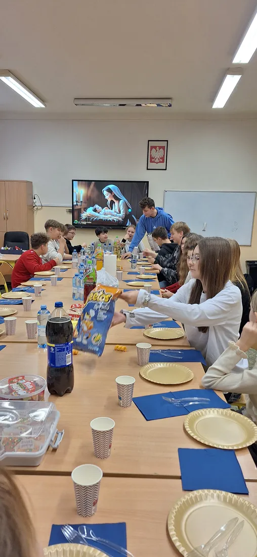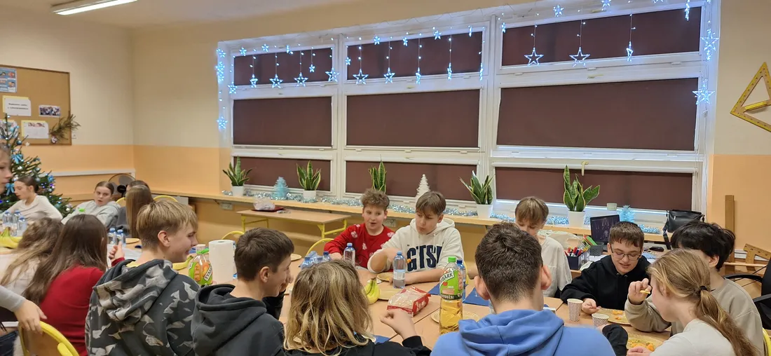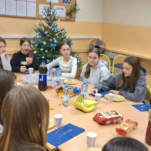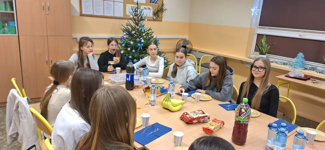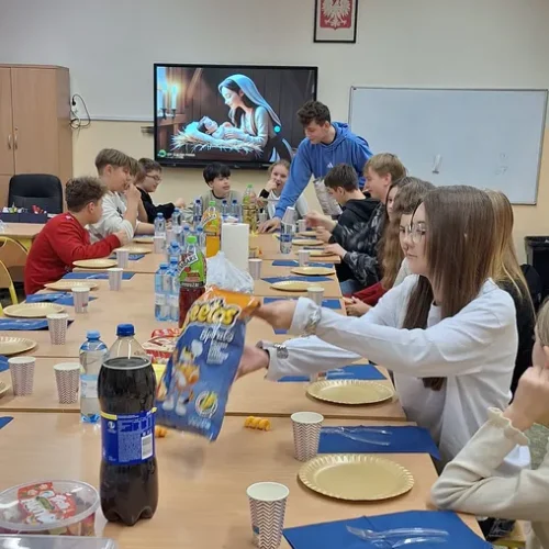 Uczniowie podzielili się opłatkiem, złożyli sobie serdeczne życzenia oraz wspólnie spędzili czas w miłej, pełnej ciepła atmosferze. Spotkanie sprzyjało integracji zespołu klasowego i przypomniało wszystkim o wartościach takich jak wzajemny szacunek, dobroć i wspólnota.