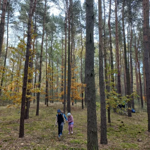 W lesie mogliśmy obserwować różnorodność szaty roślinnej, słuchać odgłosów lasu, śpiewu ptaków i zbierać jesienne skarby.
