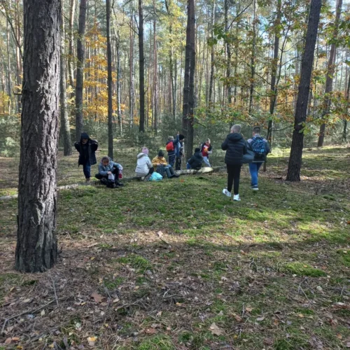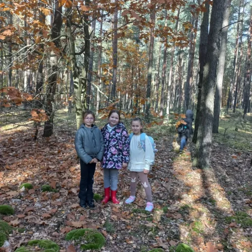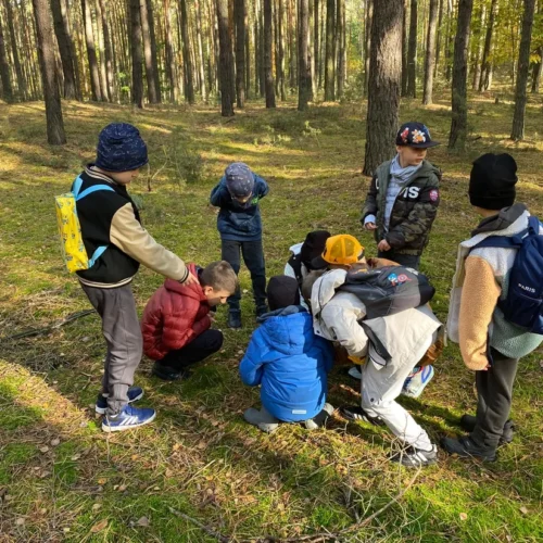 Głównym celem wycieczki było poznanie lasu jako ekosystemu, w którym żyją rośliny i zwierzęta. Rozwijaliśmy więź z naturą i dbaliśmy o właściwe zachowanie.