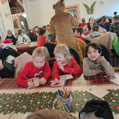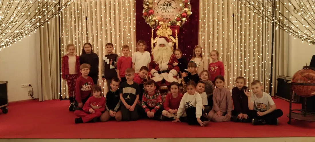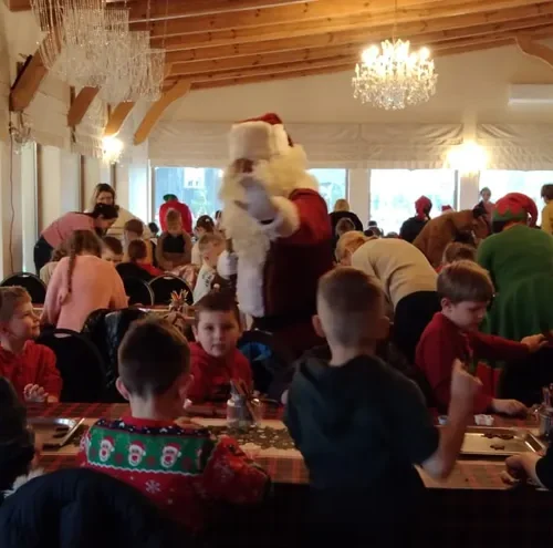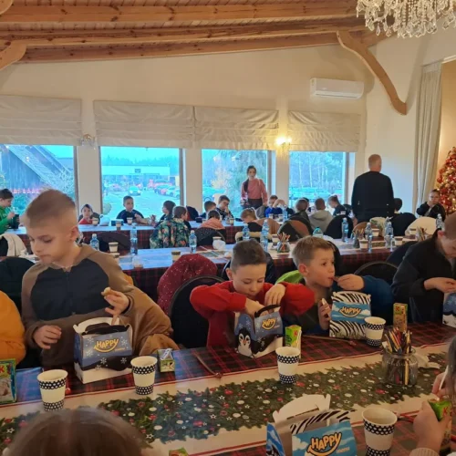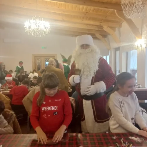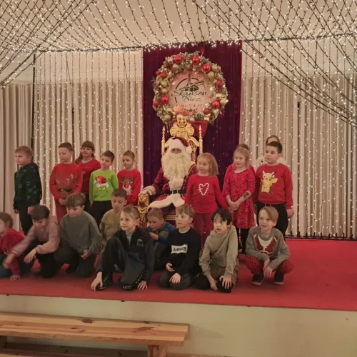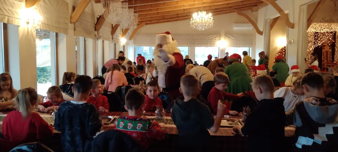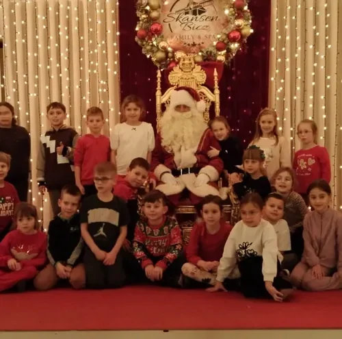 Podczas wizyty nie zabrakło też niezwykłych spotkań – uczniowie zmierzyli się z psotnym Grinchem, a później przywitał ich sam Święty Mikołaj. Było również mnóstwo radości i śmiechu podczas zjazdów na pontonach, które okazały się jedną z największych atrakcji dnia. Wizyta w wiosce przeniosła nas w magiczny, świąteczny nastrój i pozostanie w pamięci najmłodszych.