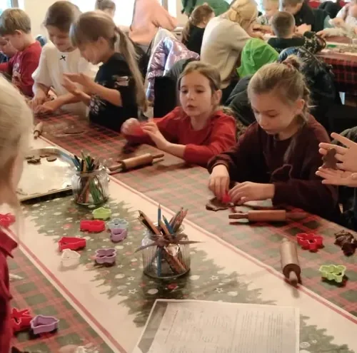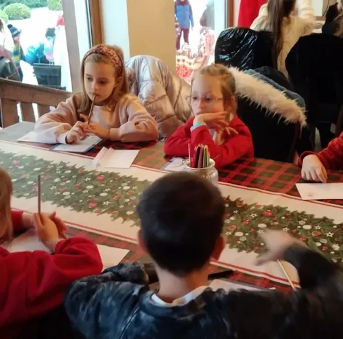 05.12.2025 r. klasy pierwsze wybrały się na wyjątkową wycieczkę do Wioski Świętego Mikołaja, gdzie od pierwszych chwil poczuliśmy niezwykłą, świąteczną atmosferę. Dzieci napisały własne listy do Świętego Mikołaja, wkładając w nie mnóstwo serca i marzeń. Następnie piekły aromatyczne pierniczki, które wypełniły całą wioskę zapachem świąt.