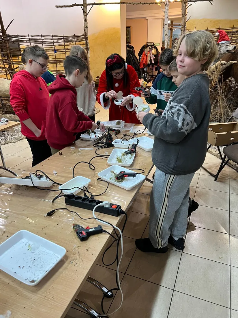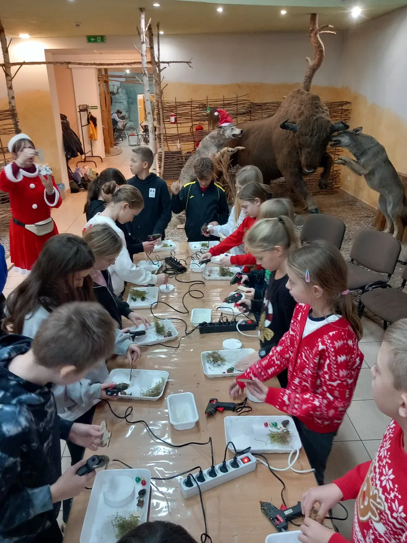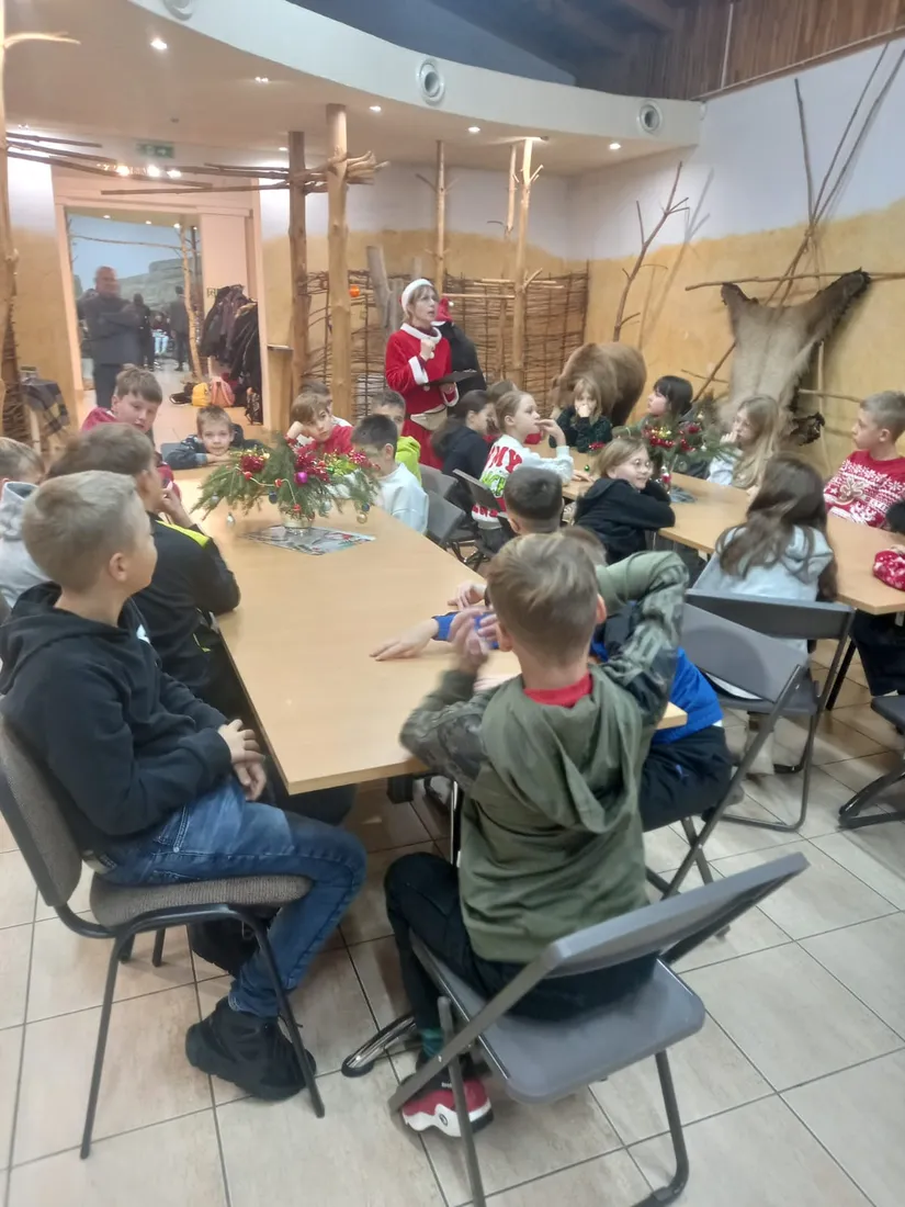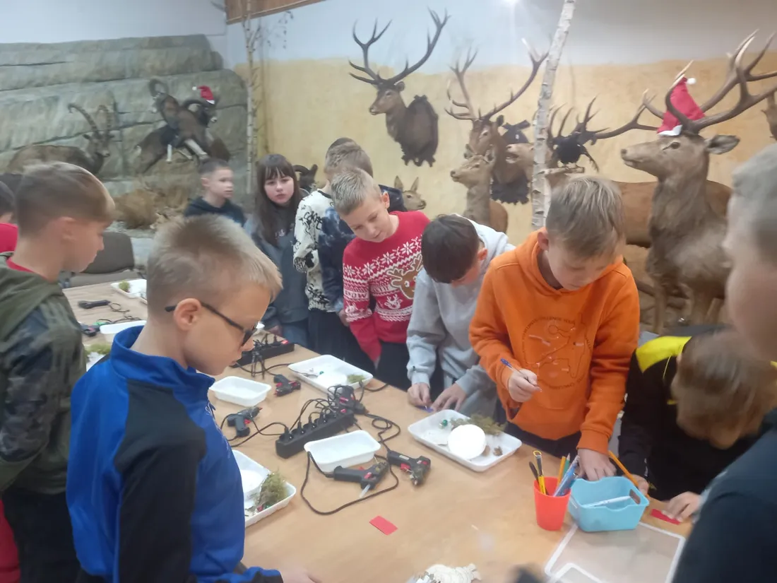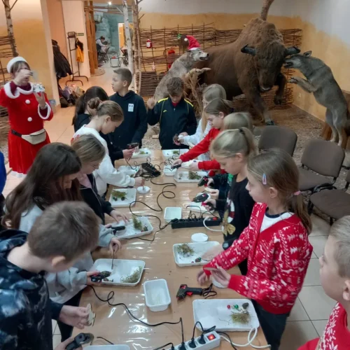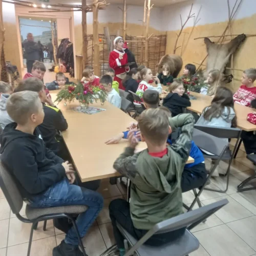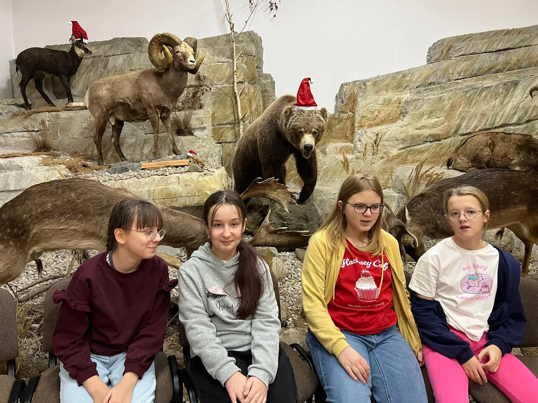 Pierwszym punktem programu było Muzeum Przyrodniczo-Łowieckie w Uzarzewie, gdzie uczniowie wzięli udział w warsztatach edukacyjno-plastycznych. Podczas zajęć poznawali tradycje bożonarodzeniowe, zimowe zmiany zachodzące w przyrodzie oraz wykonywali własne ozdoby świąteczne. Dużą atrakcją było także spotkanie z Mikołajem, który wręczył dzieciom prezenty.