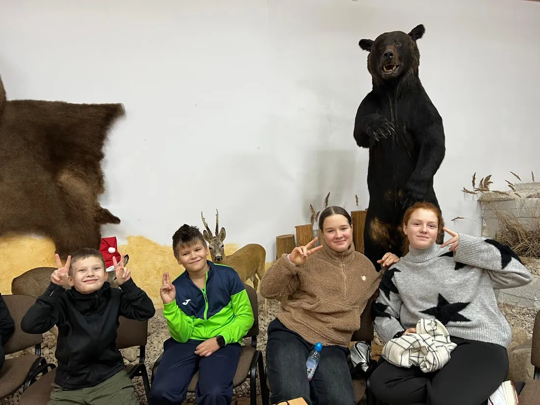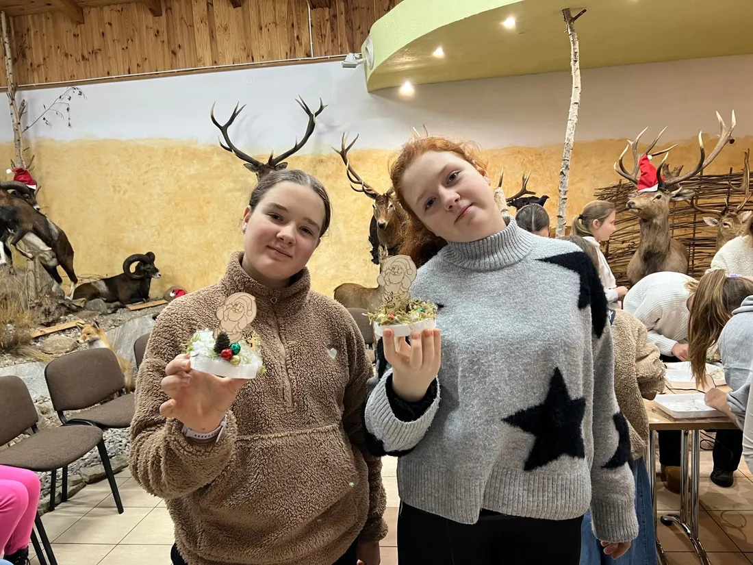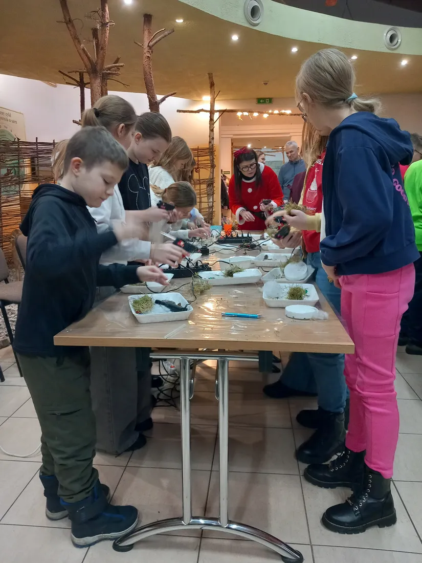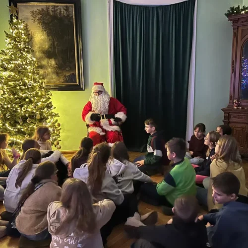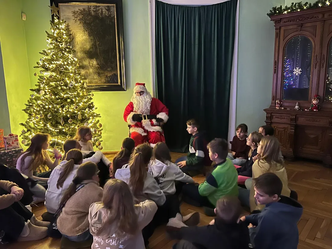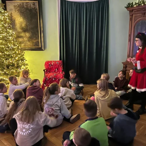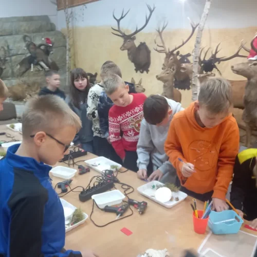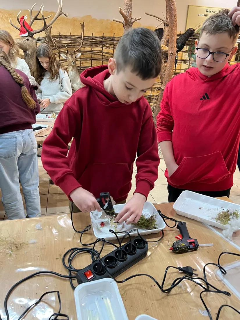Pierwszym punktem programu było Muzeum Przyrodniczo-Łowieckie w Uzarzewie, gdzie uczniowie wzięli udział w warsztatach edukacyjno-plastycznych. Podczas zajęć poznawali tradycje bożonarodzeniowe, zimowe zmiany zachodzące w przyrodzie oraz wykonywali własne ozdoby świąteczne. Dużą atrakcją było także spotkanie z Mikołajem, który wręczył dzieciom prezenty.