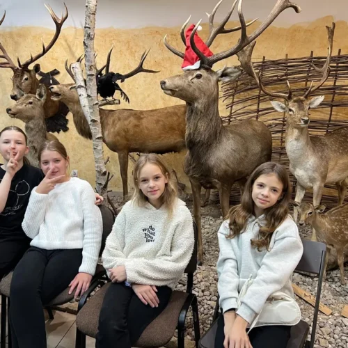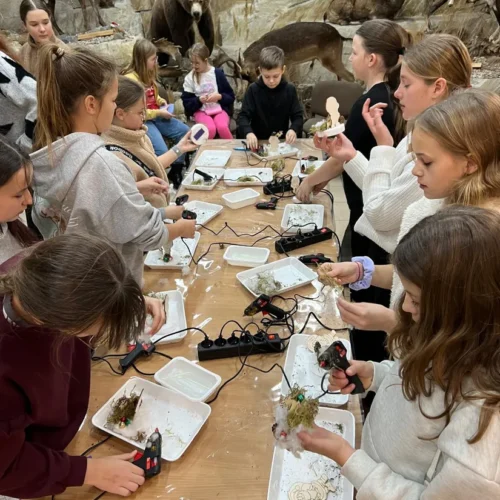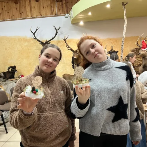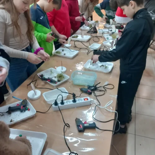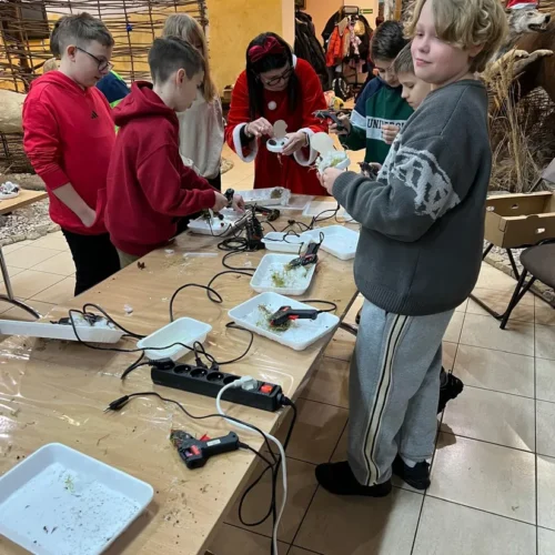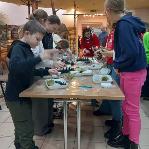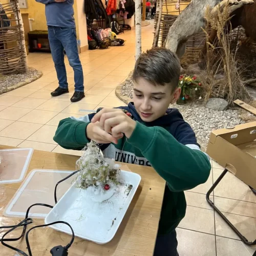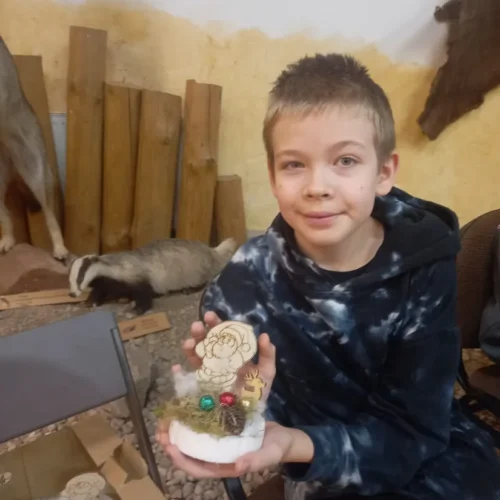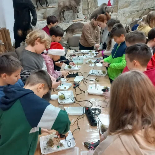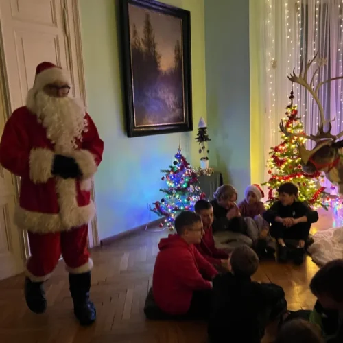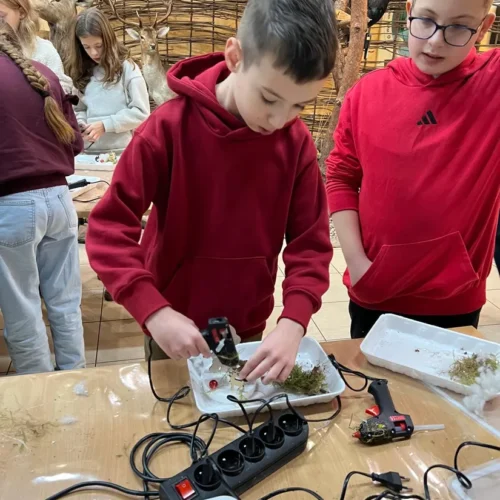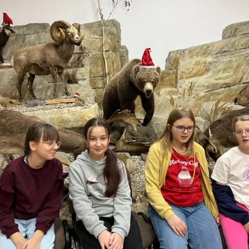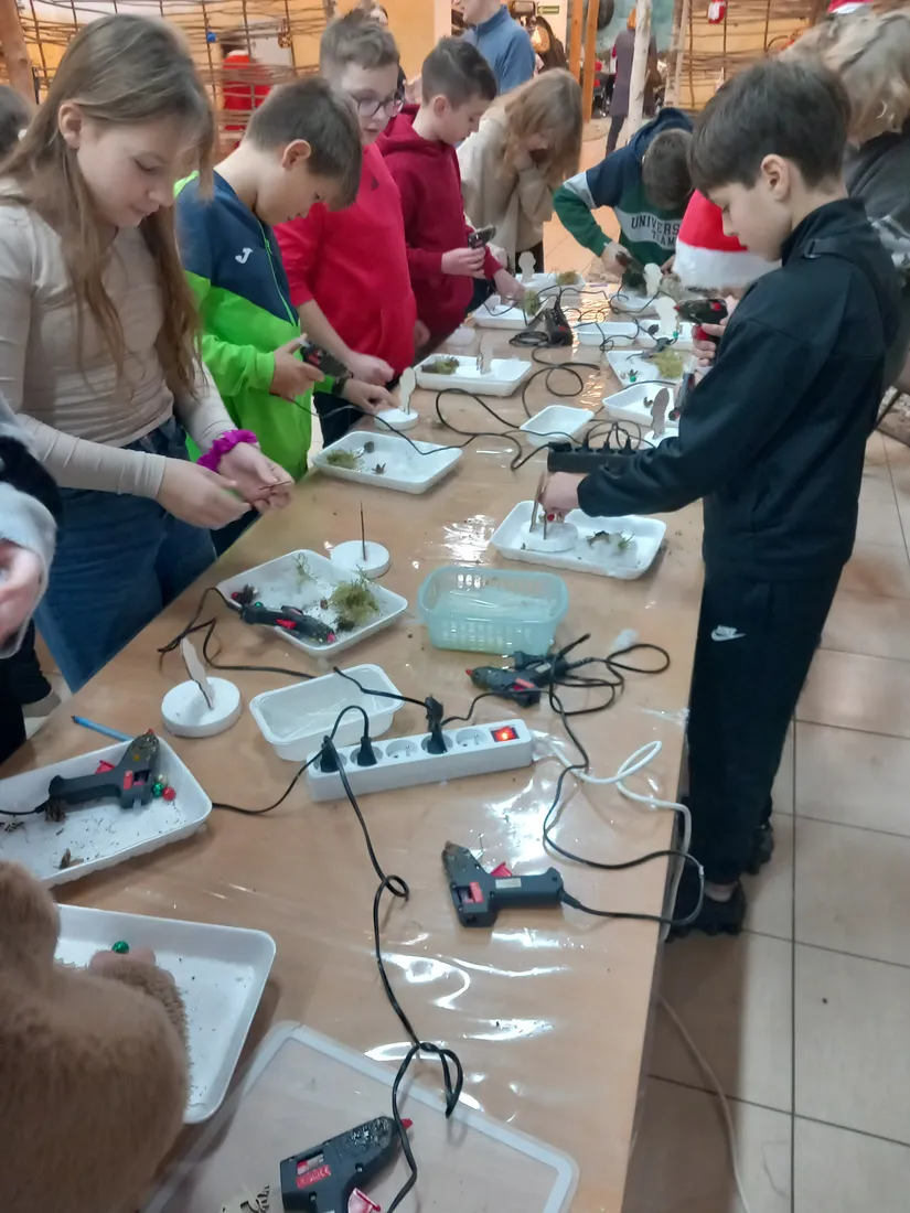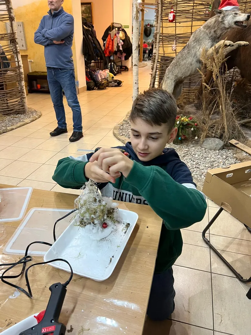 Pierwszym punktem programu było Muzeum Przyrodniczo-Łowieckie w Uzarzewie, gdzie uczniowie wzięli udział w warsztatach edukacyjno-plastycznych. Podczas zajęć poznawali tradycje bożonarodzeniowe, zimowe zmiany zachodzące w przyrodzie oraz wykonywali własne ozdoby świąteczne. Dużą atrakcją było także spotkanie z Mikołajem, który wręczył dzieciom prezenty.