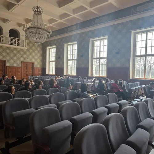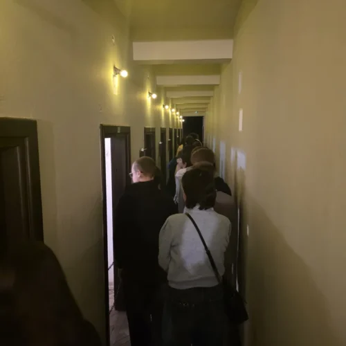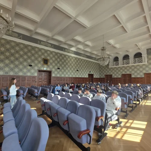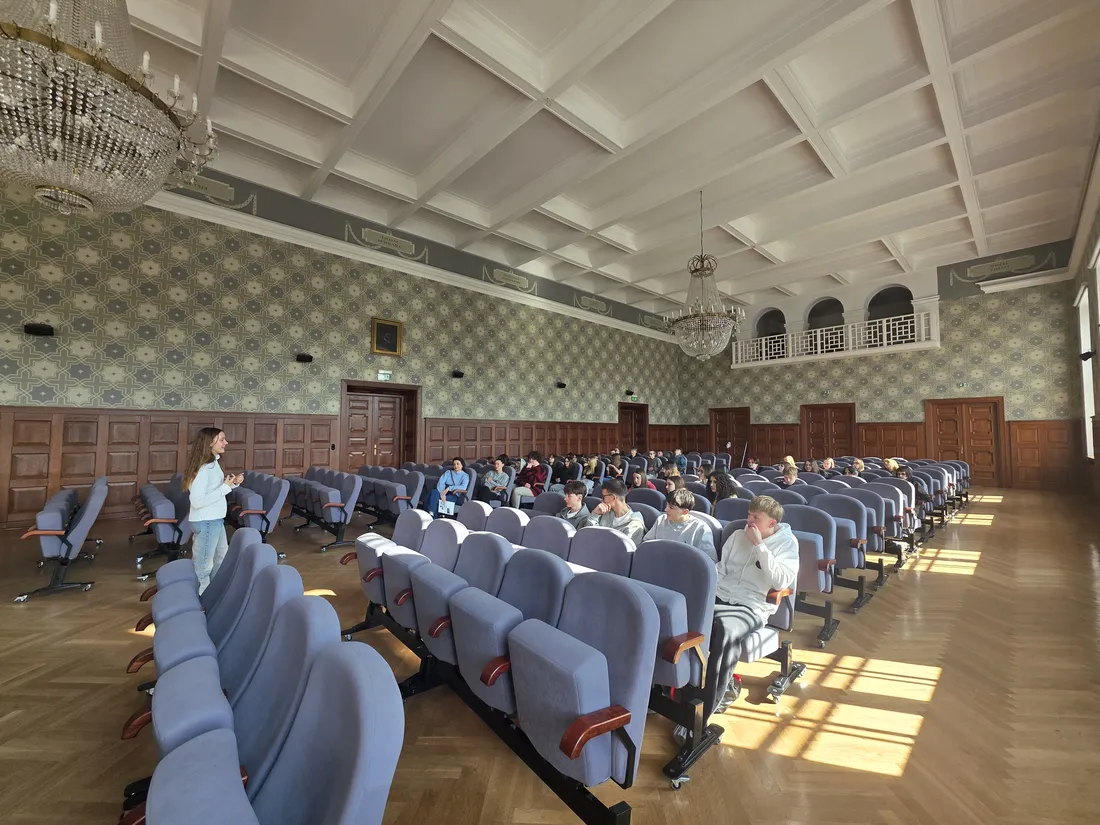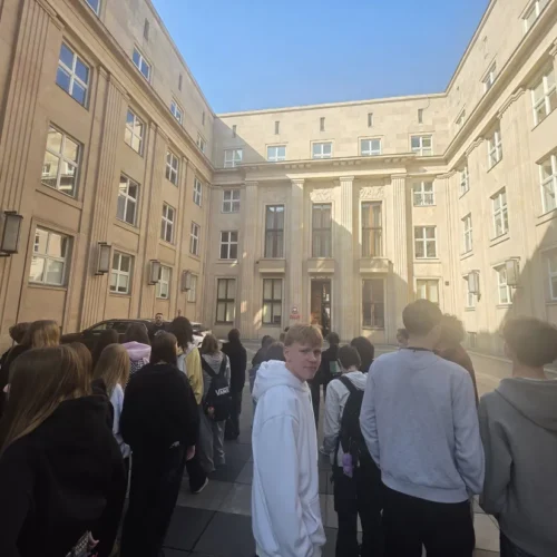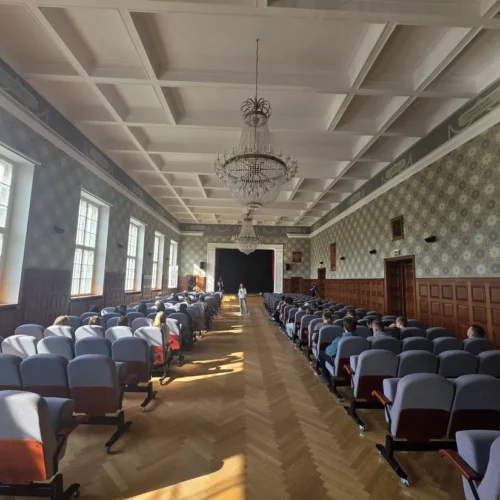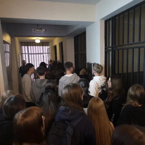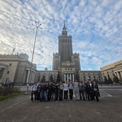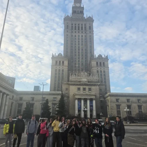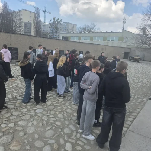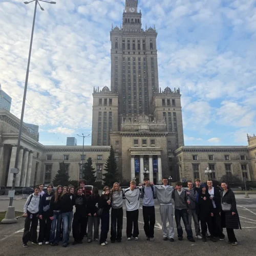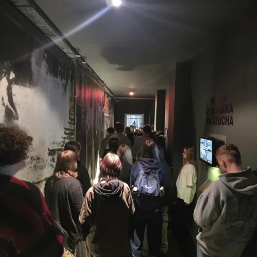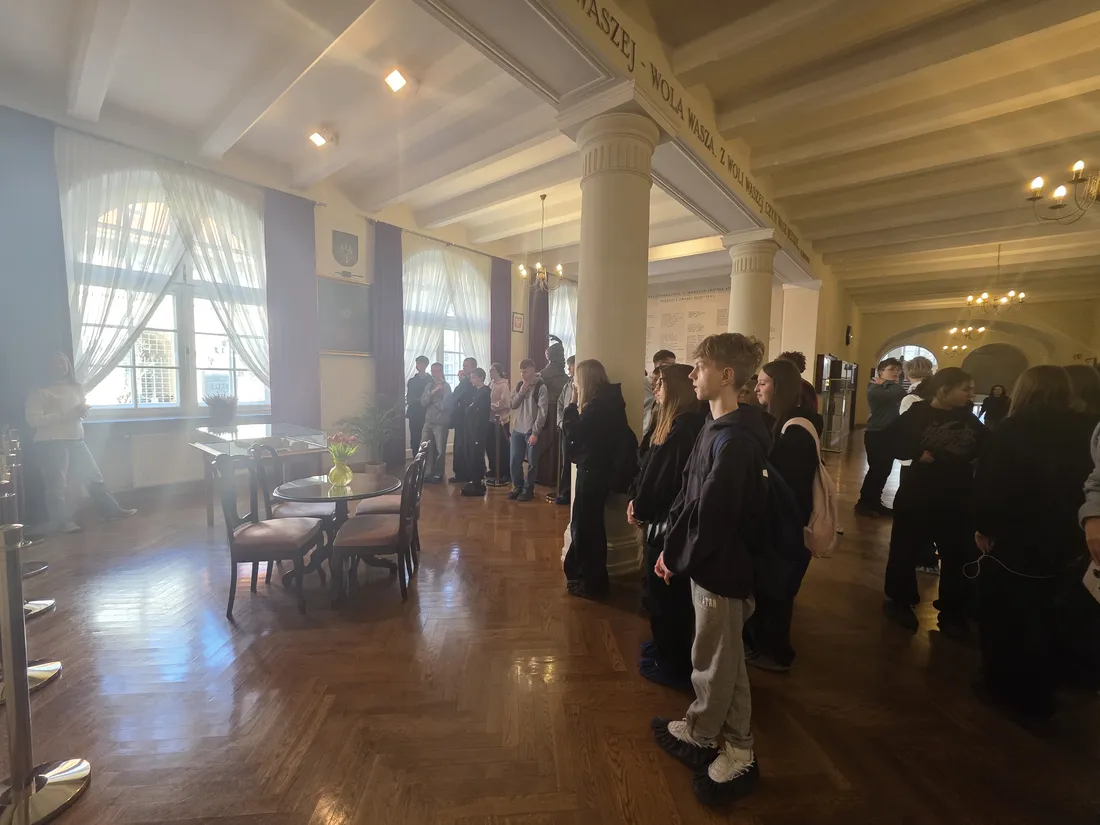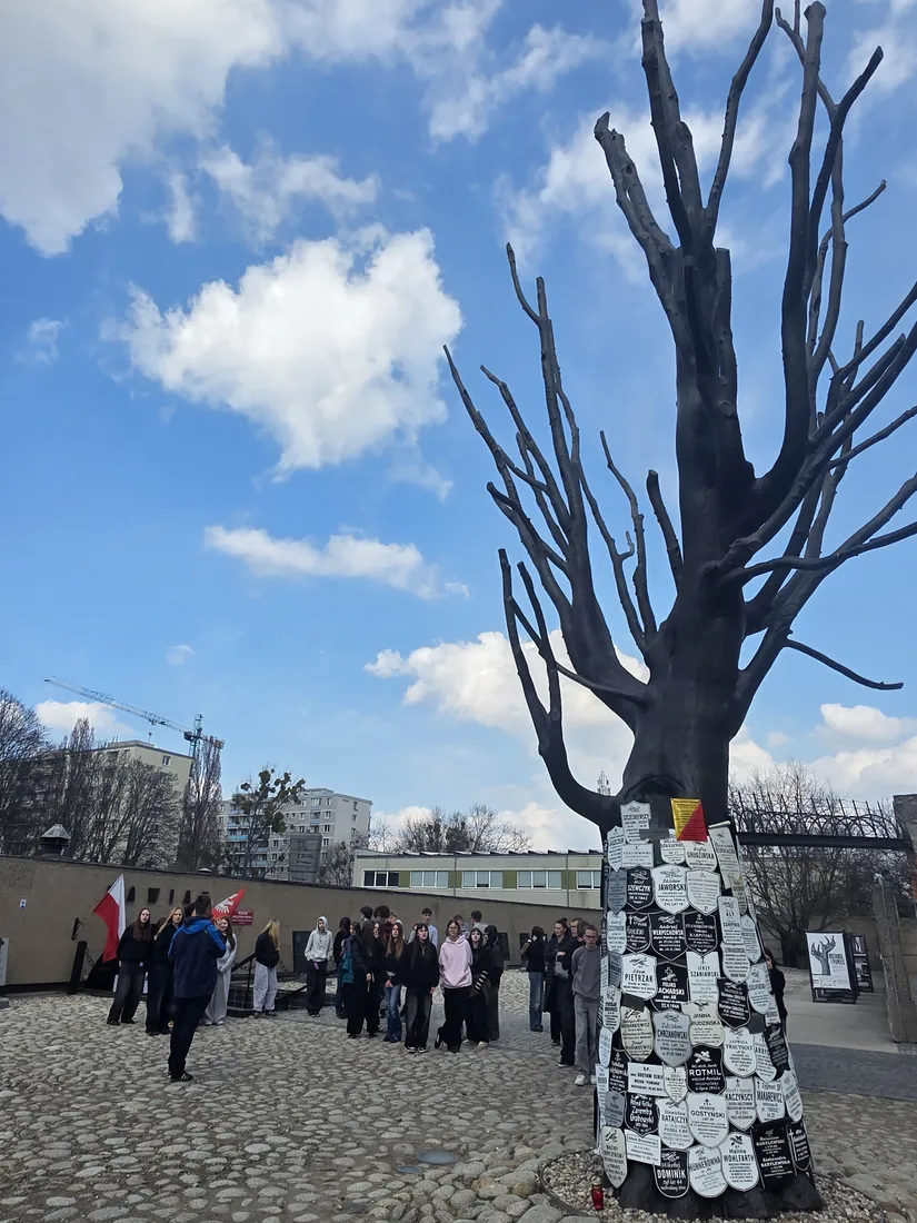 Naszą podróż rozpoczęliśmy o godzinie 9:00 spotkaniem z przewodnikiem przy Liceum Ogólnokształcącym im. Stefana Batorego – szkole, do której uczęszczali bohaterowie książki. Zwiedzanie wnętrz budynku pozwoliło nam wyobrazić sobie ich codzienne życie jeszcze przed wybuchem wojny i uświadomić sobie, jak bardzo zmieniło je doświadczenie okupacji.