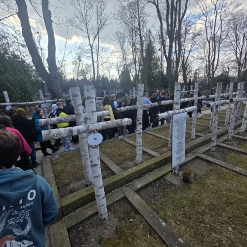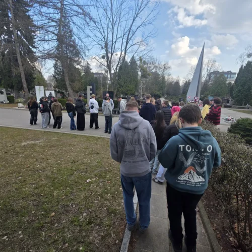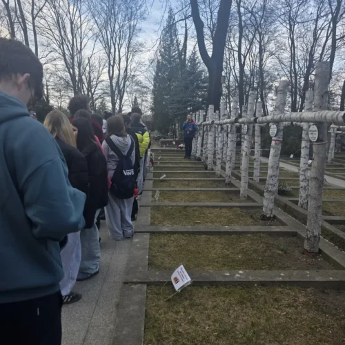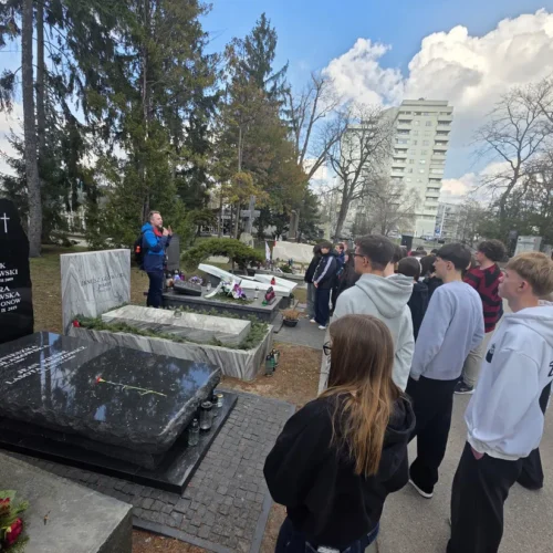 Następnie udaliśmy się na Powązki Wojskowe – miejsce spoczynku bohaterów „Kamieni na szaniec” oraz ich autora.