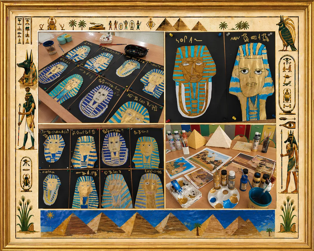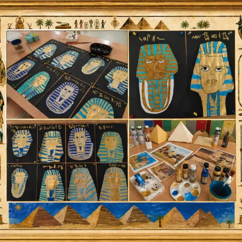 W piątek w klasie pierwszej ponownie odbyły się zajęcia z cyklu „Piątek ze sztuką”. Tym razem uczniowie przenieśli się w fascynujący świat starożytnego Egiptu. Podczas spotkania rozmawialiśmy o kulturze tej niezwykłej cywilizacji – pojawiły się tematy związane z faraonami, piramidami, mumiami, a także szczególną rolą kotów w życiu Egipcjan.